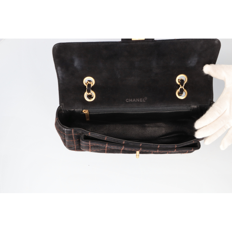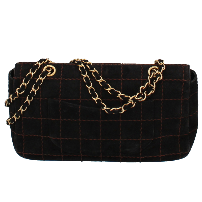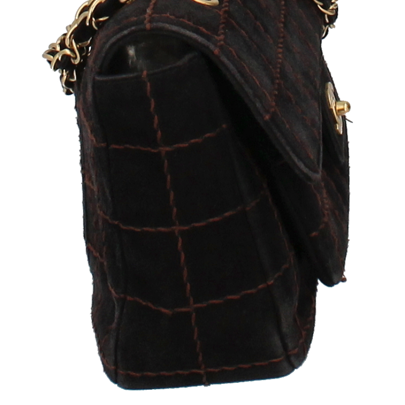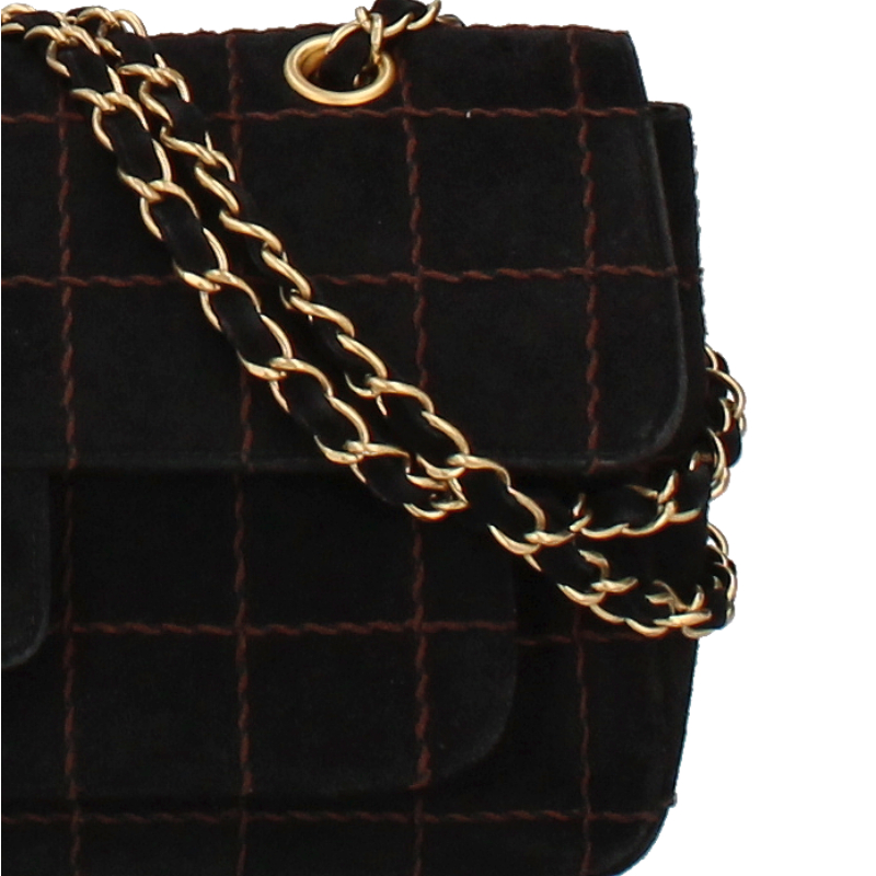 USED品。ゴールド金具。正面のココマークがシャネルを主張しており、素材のスエードは高級感が溢れ末永くお使い頂けます。