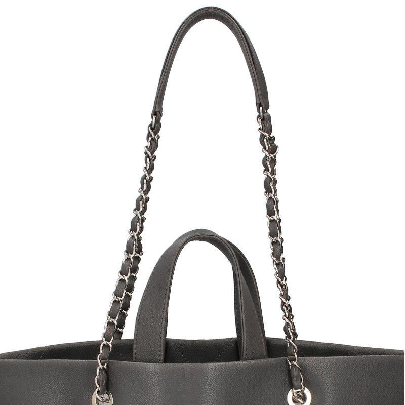 USED品。シルバー金具。2WAY仕様です。ボリューム感のある素材が高級感を演出し、シャネルの良い所がギュッと詰まったデザインです。