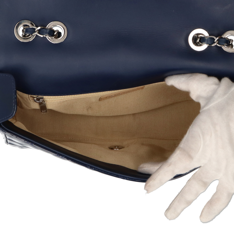 少々使用感有。フラップの角に擦れがあります。ショルダーに擦れと色褪せがあります。シルバー金具。カード・シール有(22番台)。