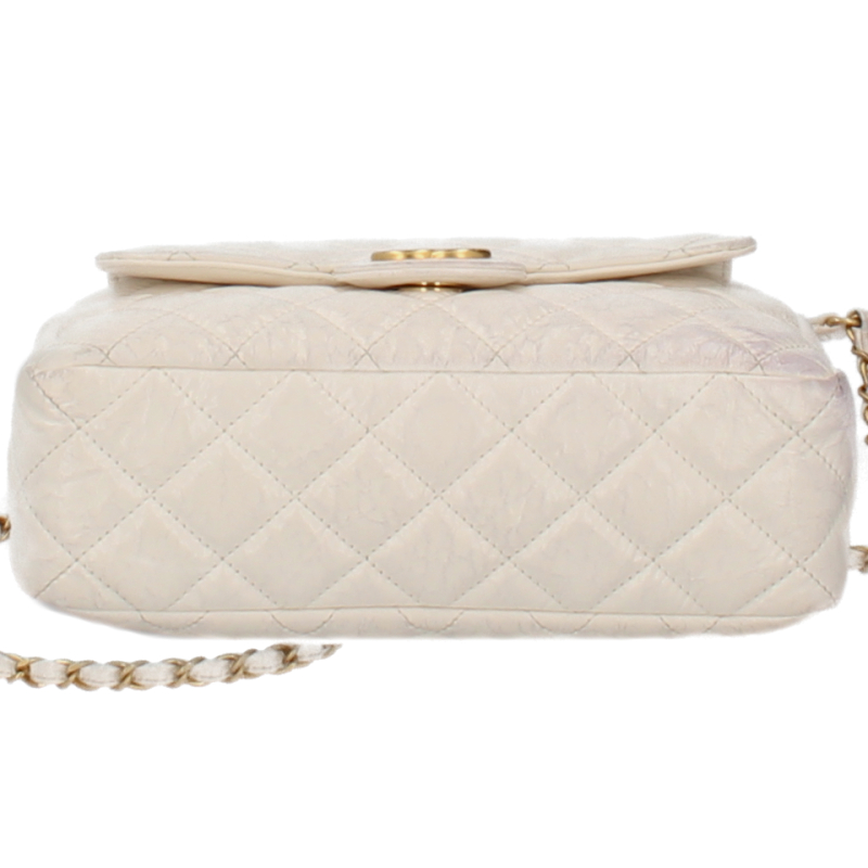 多少使用感有。ゴールド金具。金具に剥がれがあります。表面全体とストラップのレザーに色移りの汚れがあります。内部に汚れがあります。2021年以降のランダム番号のプレートが入ったモデルです。