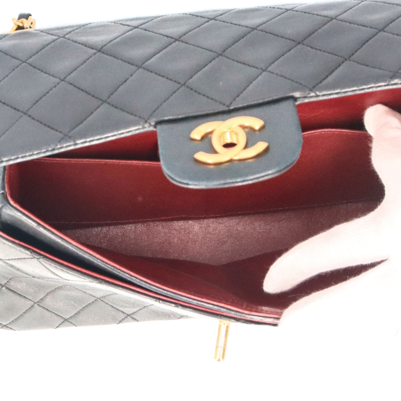 多少使用感有。ゴールド金具。表面に色褪せ、擦り傷があります。フラップ内側にシワ、擦り傷があります。角スレがあります。チェーンに変色があります。カード・シール有(1番台)。