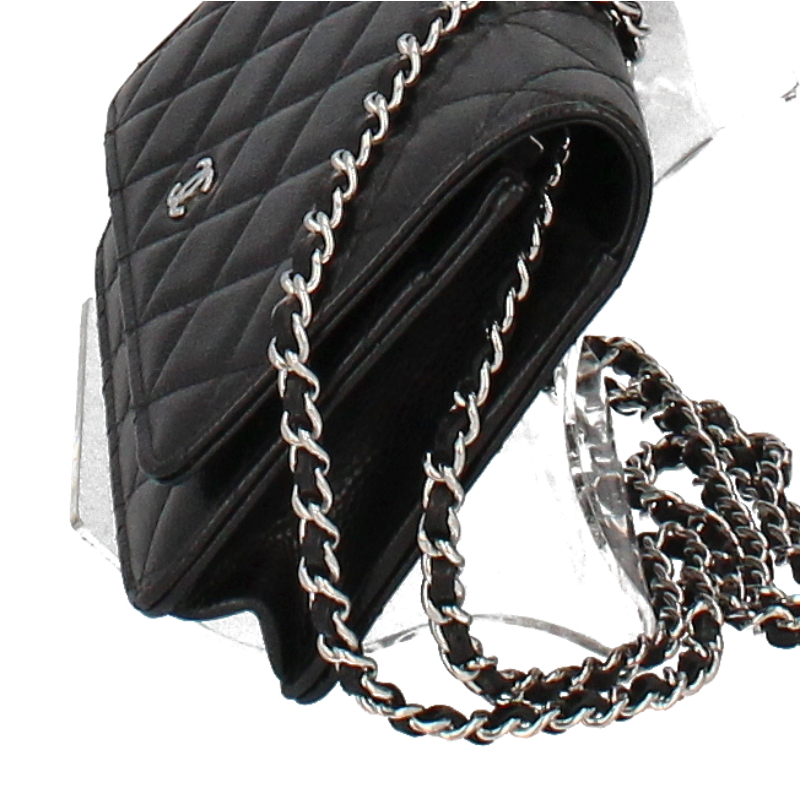 USED品。シルバー金具。チェーンの長さも丁度よく、スマートフォンを入れてショルダーになるかわいいケースです。カードなども収納できお財布としても使えます。