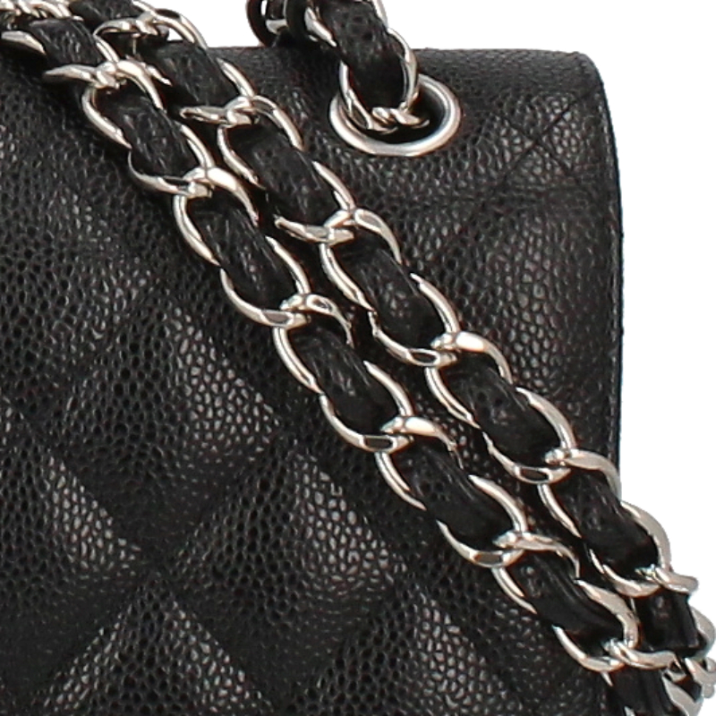 USED品。シルバー金具。何気なくの普段使いも素敵ですが、パーティーなどのフォーマルな席にもピッタリです。シャネル好きの方なら、一つは持っておきたい逸品です。