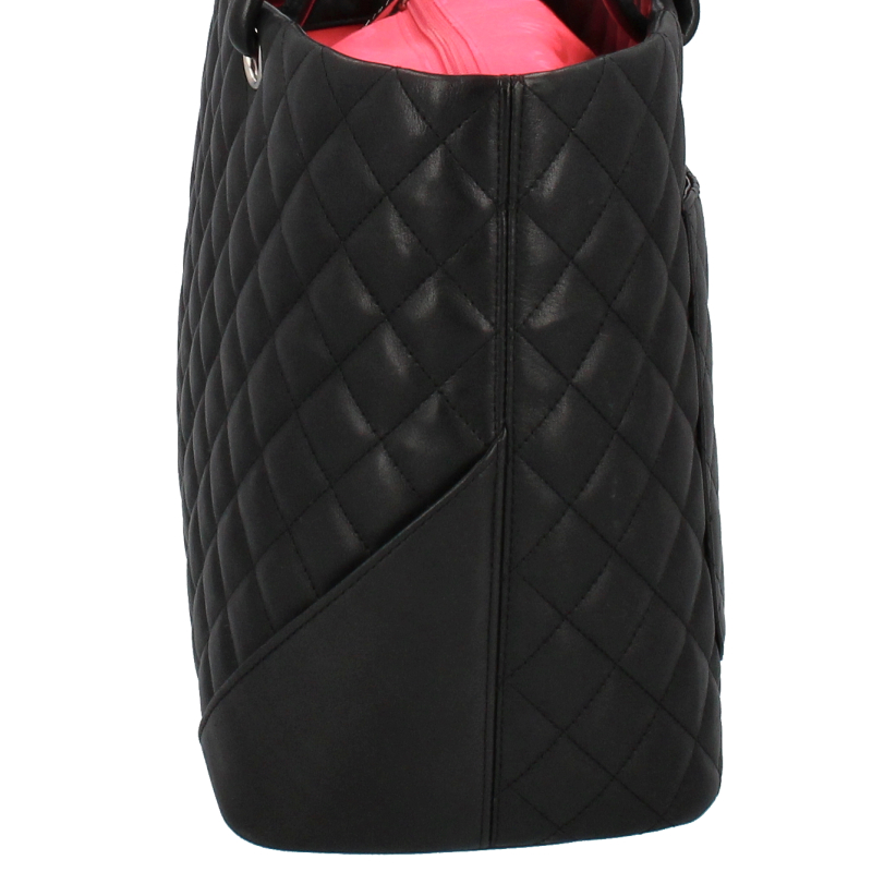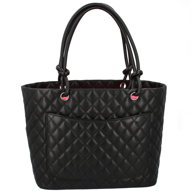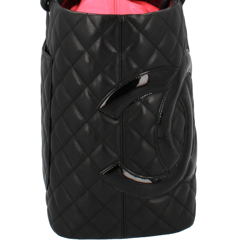USED品。シルバー金具。不動の人気を誇るシャネルの定番『カンボンライン』。通勤・通学にもお使いいただける大きめのサイズがポイントです。