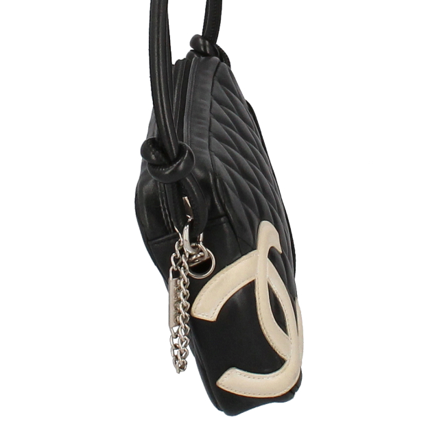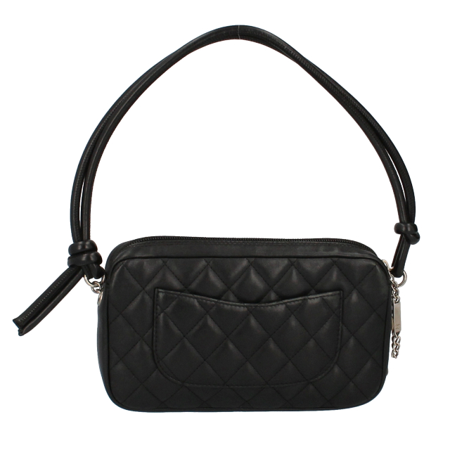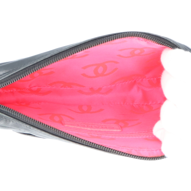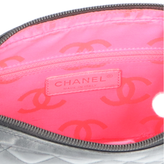 USED品。シャネルの定番、カンボンラインのアクセサリーポーチです。大きめなポーチになっているためちょっとしたお出かけで必要最低限のものを持ち運ぶのにもおすすめです。