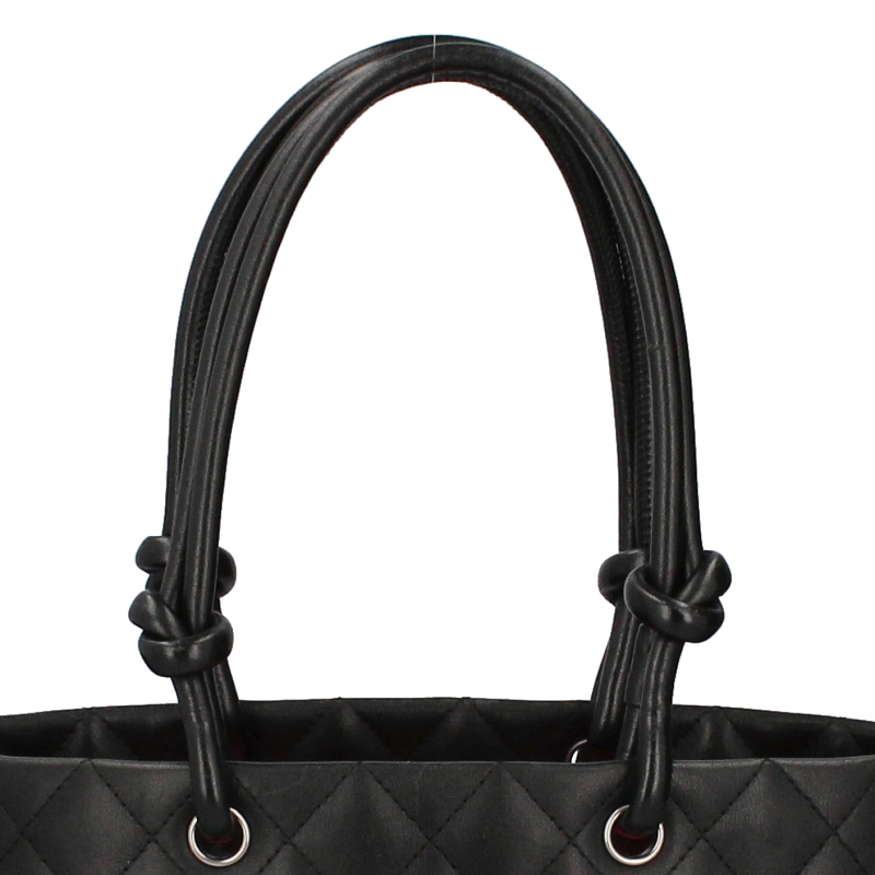 USED品。バイカラーが可愛らしい印象のデザイン『カンボンライン』のトートバッグ。デイリーユースにピッタリのミディアムサイズです。存在感抜群ですのでファッションのポイントとしてご使用いただけます。