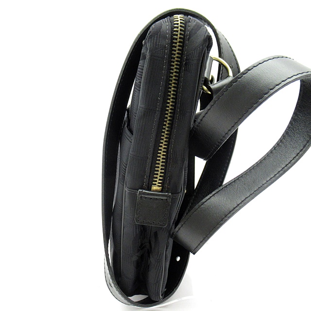 USED品。ゴールド金具。本体は軽くて丈夫なナイロン素材です。ショルダー部分にはしっかりとしたレザーを使用しています。程よいサイズ感で収納力も高く、ちょっとしたお出かけにも最適です。