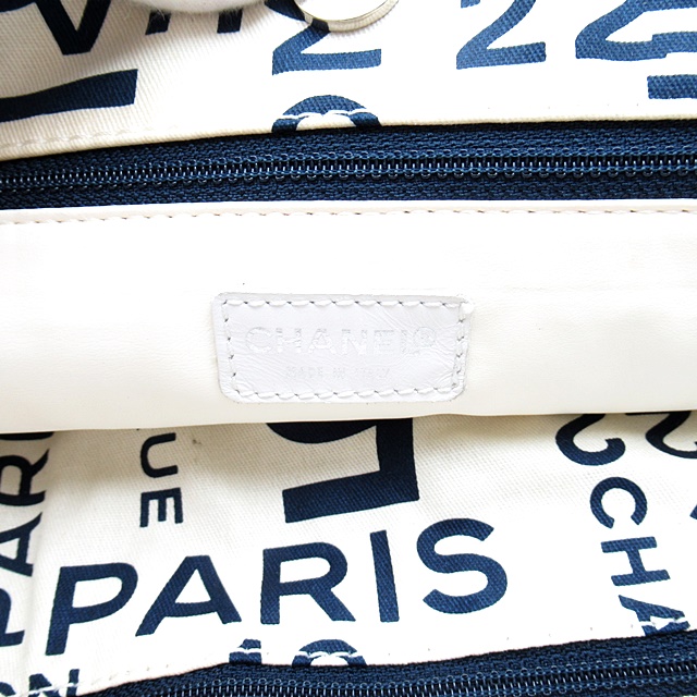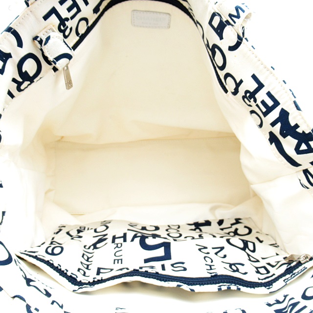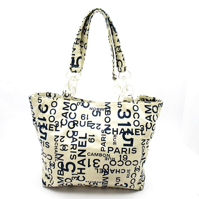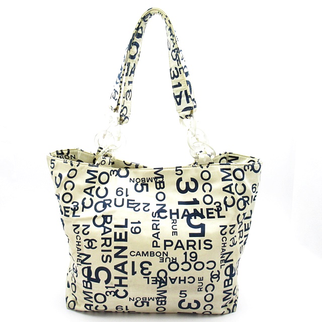 USED品。ツートンカラーで英数字の散りばめられたとてもお洒落なバッグ。容量もたくさん入るので使い勝手が良いバッグです。