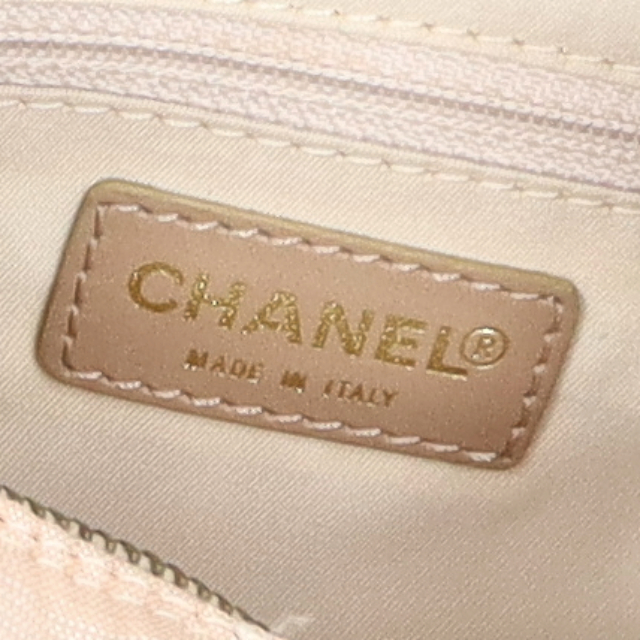 USED品。本体は軽くて丈夫なナイロン素材、ショルダー部分はしっかりとしたレザーのシャネルの人気バッグ。小さいながらも収容力抜群です。