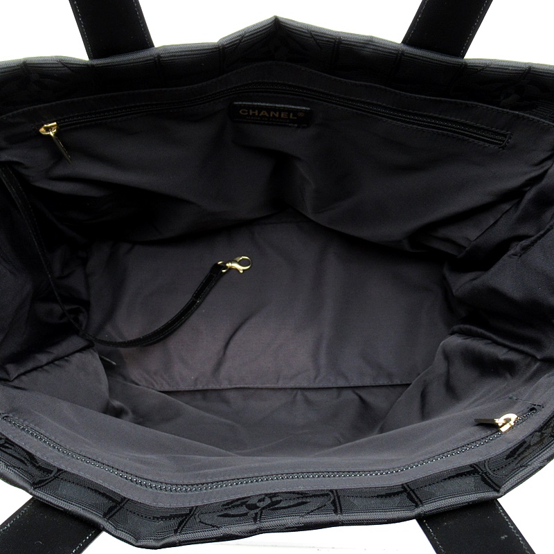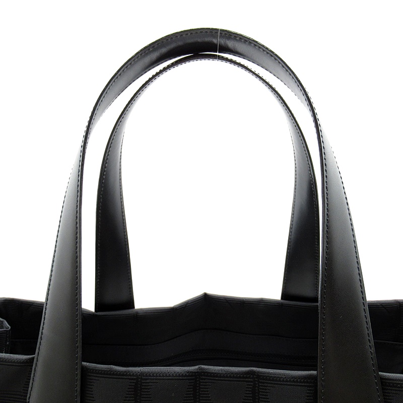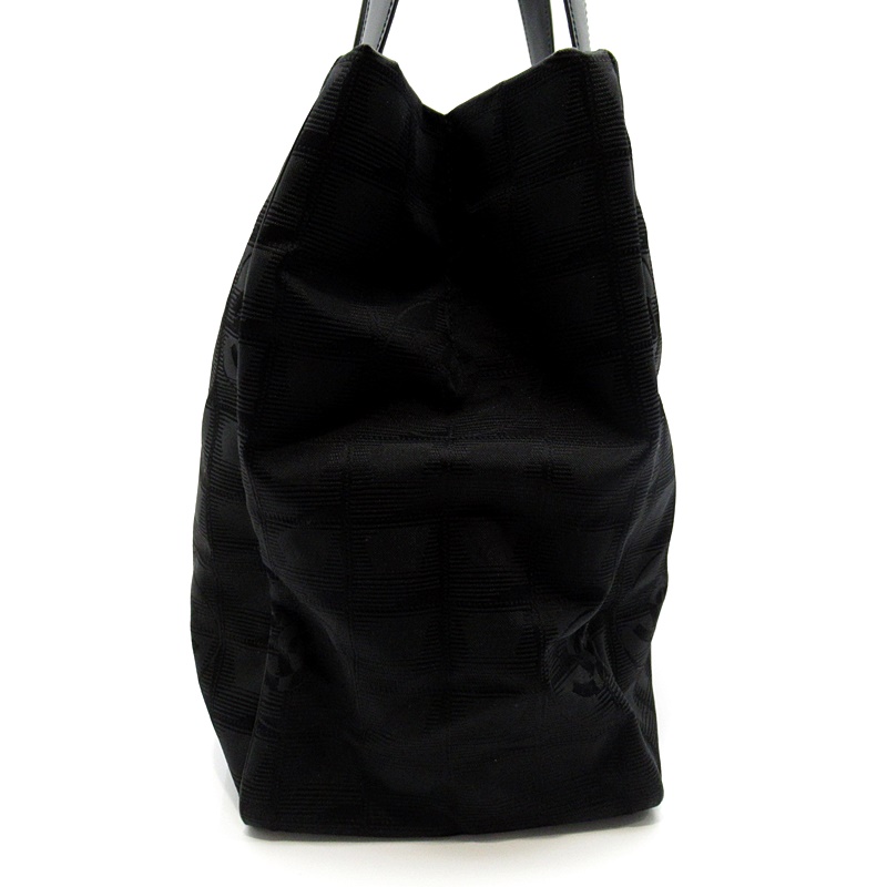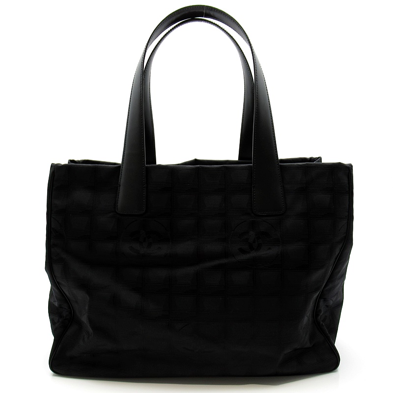 USED品。本体は軽くて丈夫なナイロン素材、ショルダー部分はしっかりとしたレザーのシャネルの人気トートバッグ。A4サイズの書類も収まる大きさで、通勤・通学にも最適です。