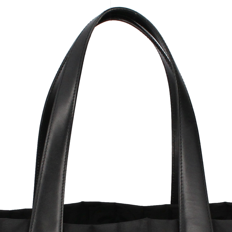 USED品。本体は軽くて丈夫なナイロン素材です。ハンドル部分にはしっかりとしたレザーを使用した人気トートバッグ。程よいサイズ感で収納力も高く、ちょっとしたお出かけにも最適です。