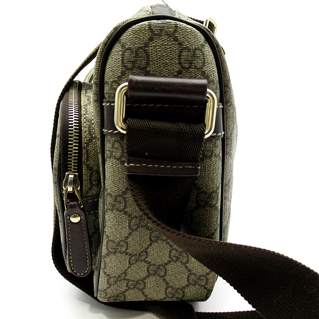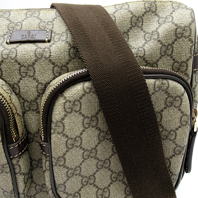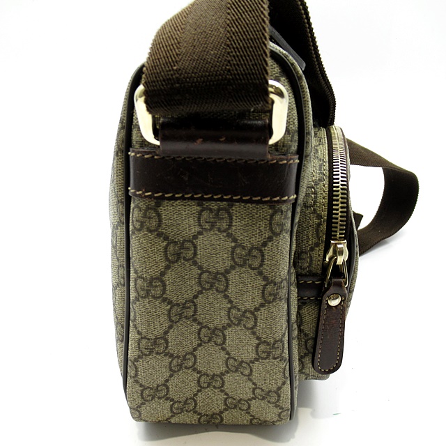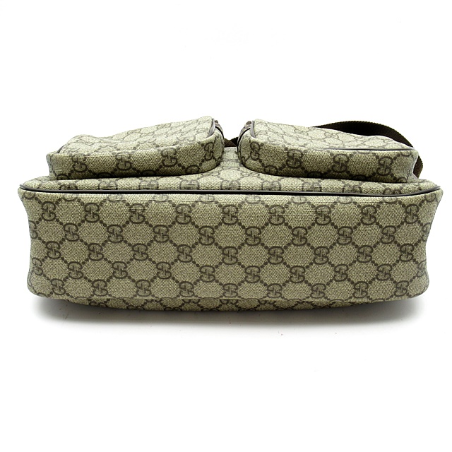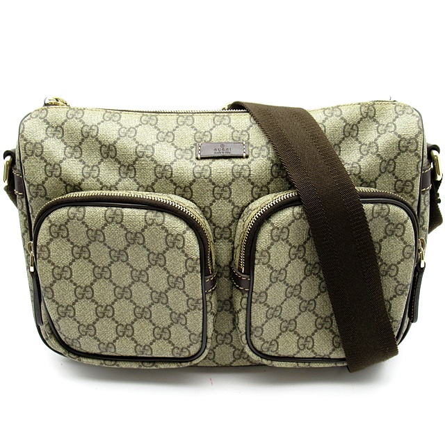 USED品。傷がつきにくく水に強い塩ビ加工素材を使用したGGプラスの斜め掛けショルダーバッグです。カジュアルながら気品溢れるデザインで年齢を問わず男女兼用でお使いいただけます。