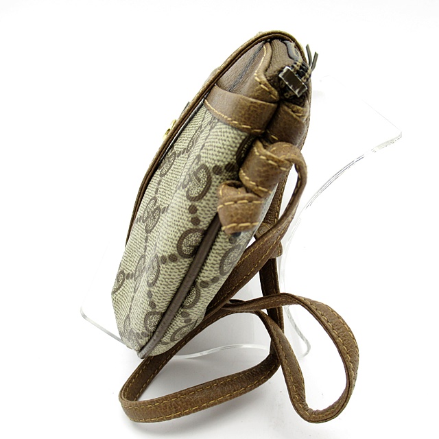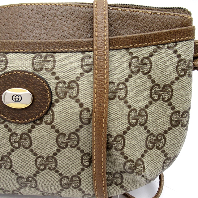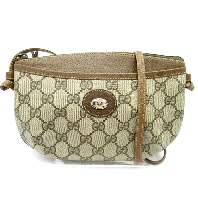 USED品。傷がつきにくく水に強い塩ビ加工素材を使用したGGプラスの斜め掛けショルダーバッグです。カジュアルながら気品溢れるデザインで年齢を問わず男女兼用でお使いいただけます。