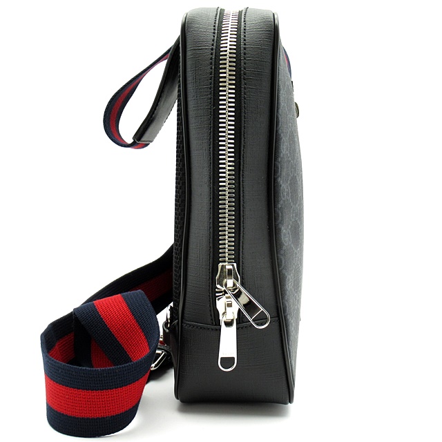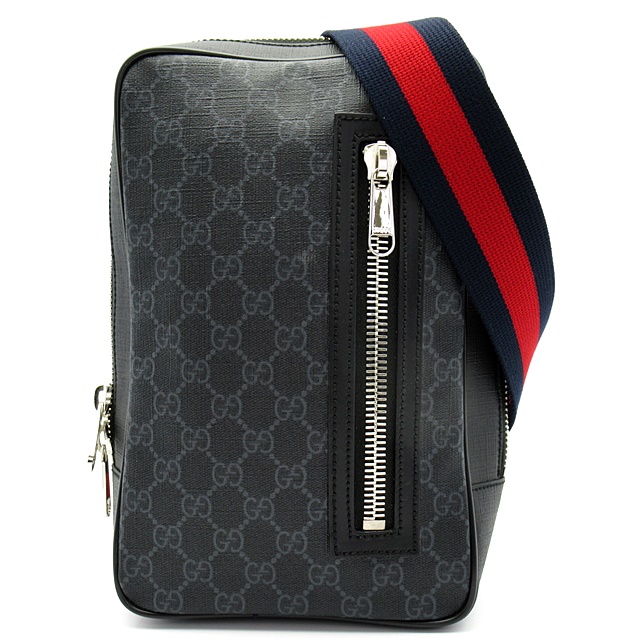 USED品。驚く程しなやかなソフトGGスプリーム素材の縦型スモールポーチ。調節可能なウェストストラップは、ブルー/レッド/ブルーの【GUCCI】のウェブストライプが特徴。クロスボディバッグとしてもご使用頂けます。