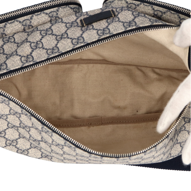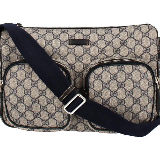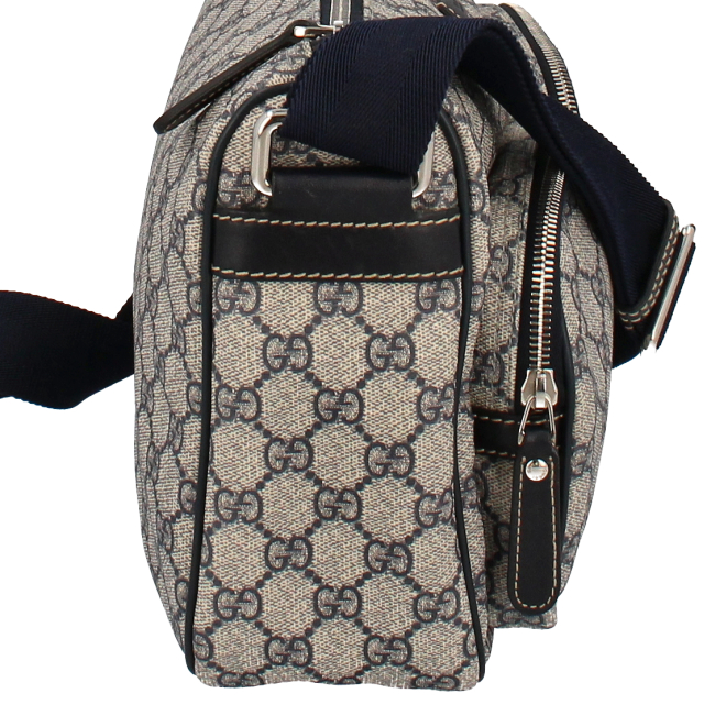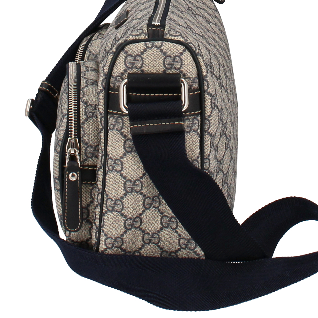 USED品。GGスプリームのお洒落なショルダーバッグです。ネイビーで合わせやすいカラーなのでデイリーユースにお勧めです。