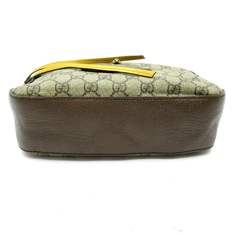 USED品。現代の航海者のためにデザインされた、ヴィンテージ風バッグのコレクション。GGスプリーム キャンバスにグッチを象徴するウェブ ストライプのトリムを施し、イエローレザーディテールをあしらいました。