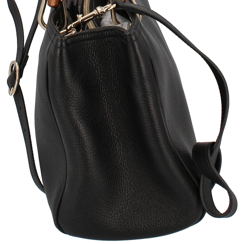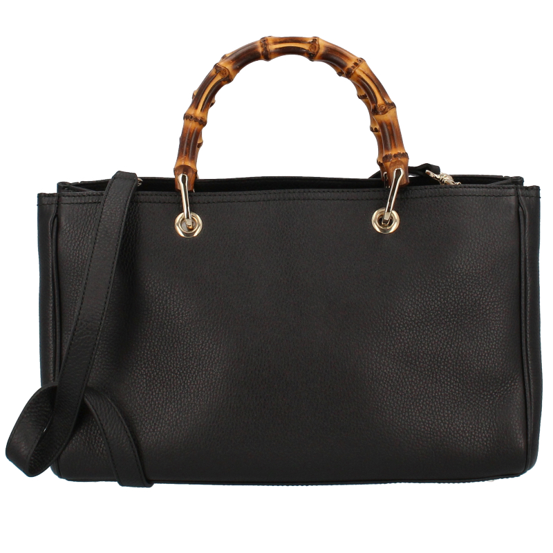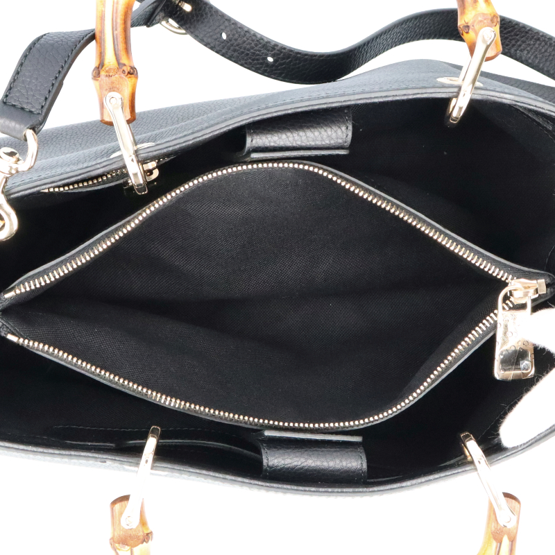 USED品。上質なレザーにバンブーハンドルがアクセントになったグッチらしいシックでハイセンスなミディアムトート。内側は2層に分かれマチもしっかりあるので荷物の収納がしやすい、大変便利なアイテムでございます。