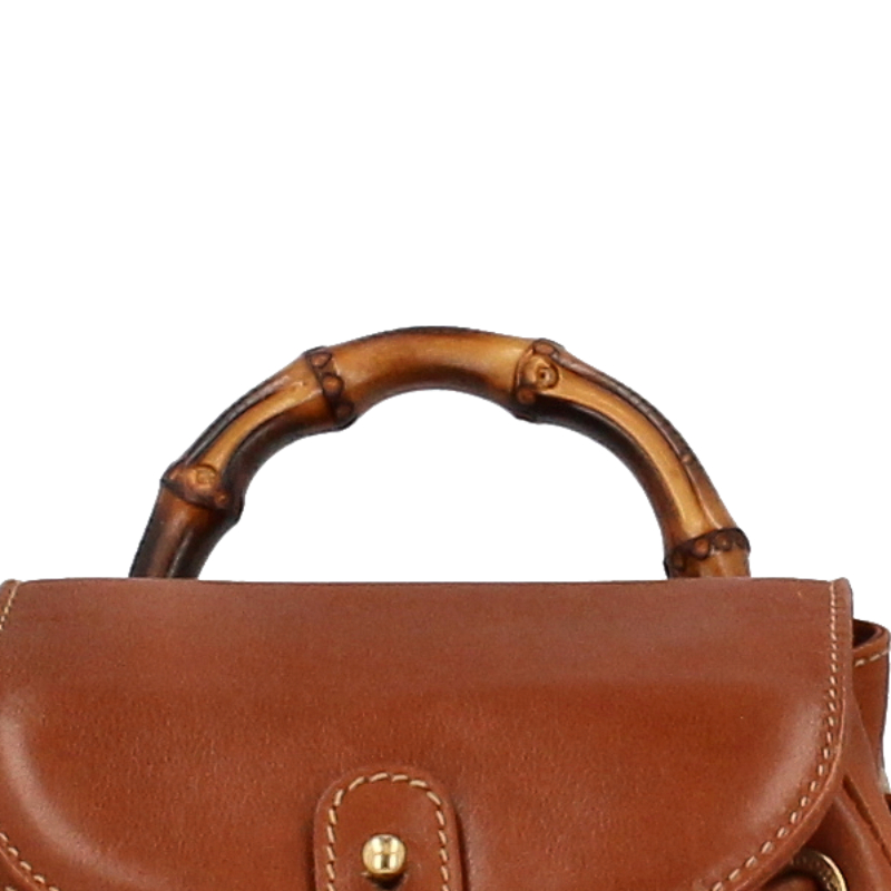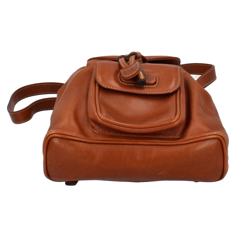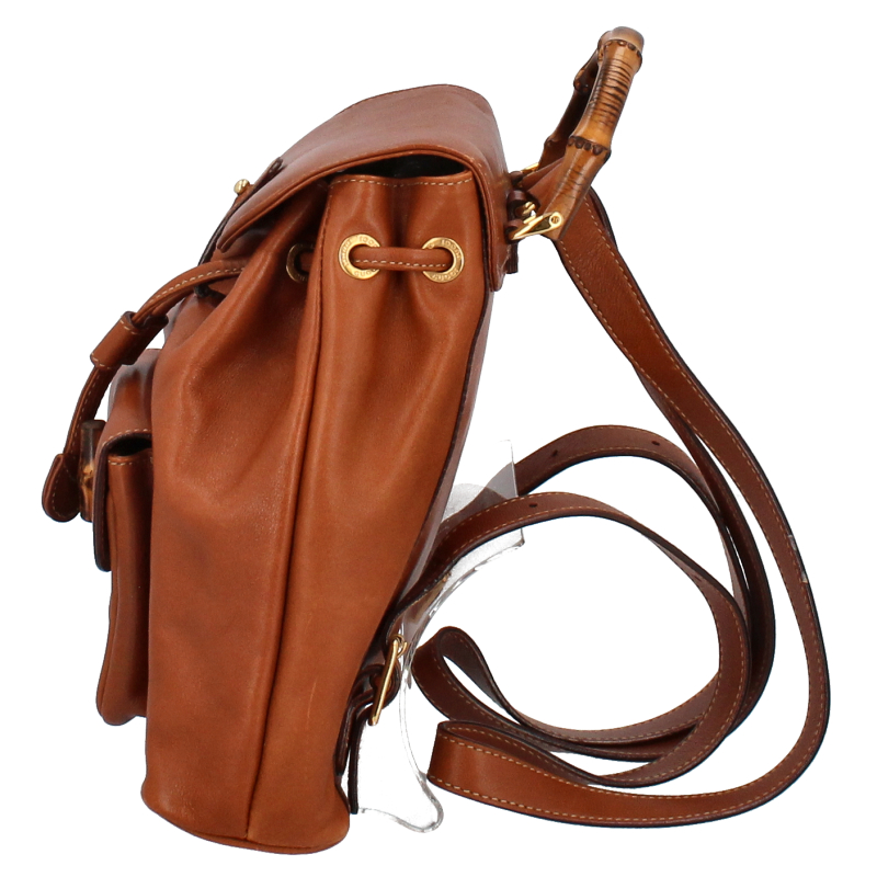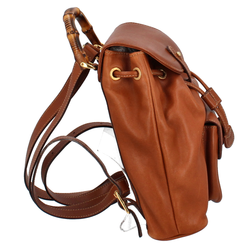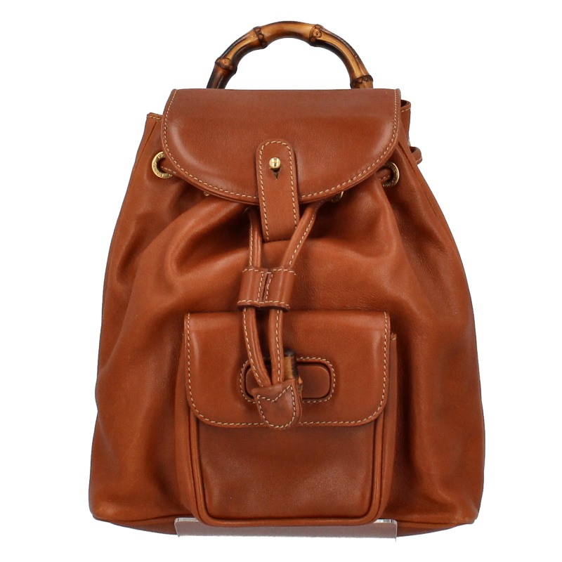 USED品。バンブーとレザーの組み合わせがお洒落なグッチのバックパック。コンパクトサイズでバンブーを使ったデザインが、大人のカジュアルスタイルにピッタリです。