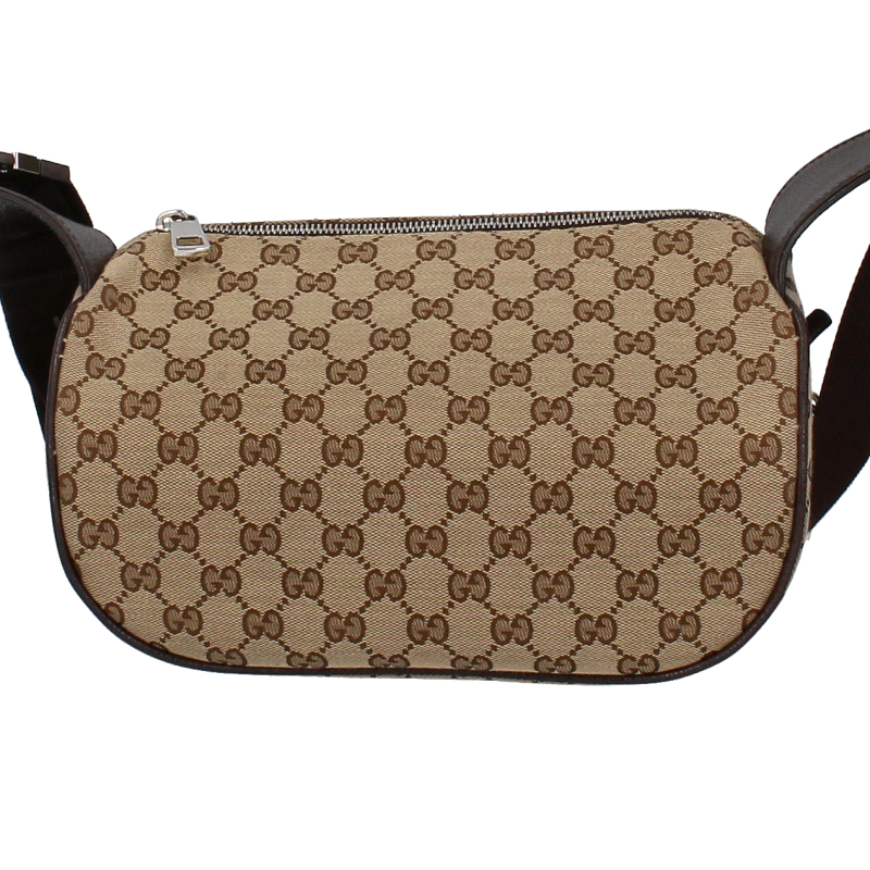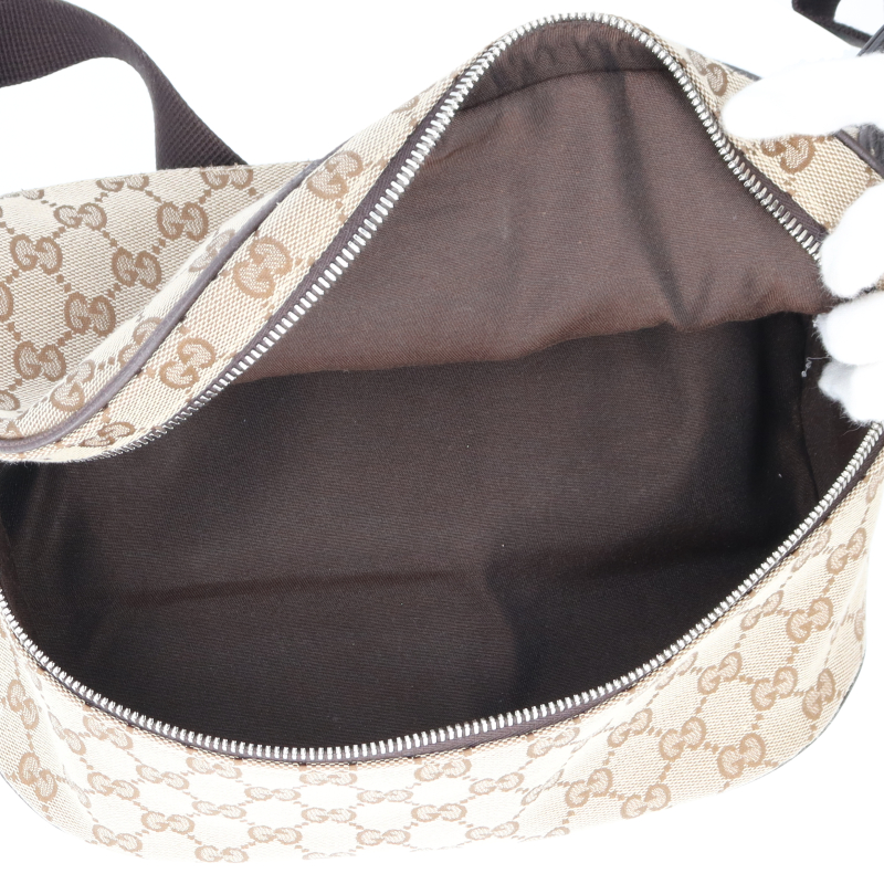 USED品。GGキャンバスのボディバッグです。ファスナー式の開口部は大きく開き出し入れも楽々で軽くて丈夫な素材です。普段使いにおすすめの逸品です。