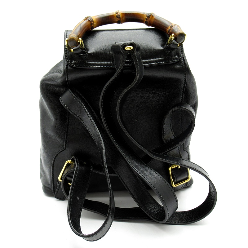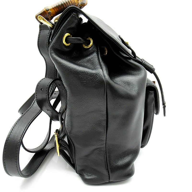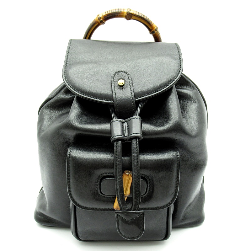USED品。バンブーとレザーの組み合わせがお洒落なグッチのバックパック。コンパクトサイズでバンブーを使ったデザインが、大人のカジュアルスタイルにピッタリです。