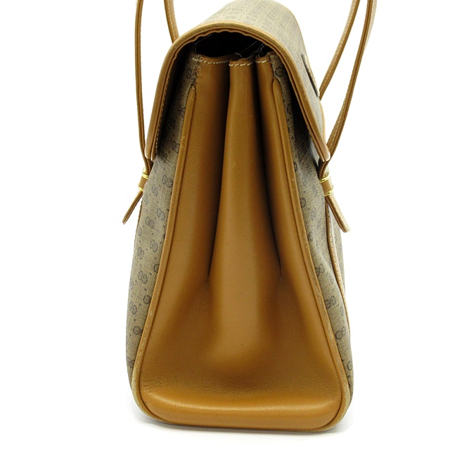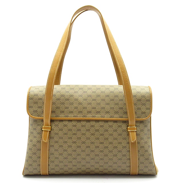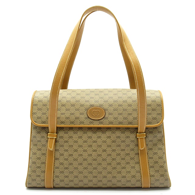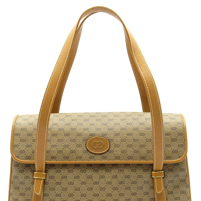USED品。人気の高いオールドグッチとなります。コーティング加工キャンバス生地を使用したハンドバッグです。全体にマイクロGGモノグラムをデザインしています。