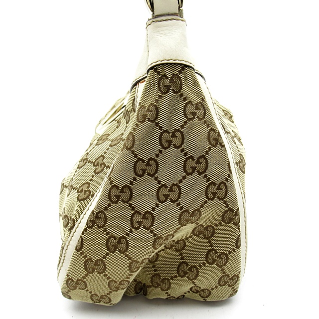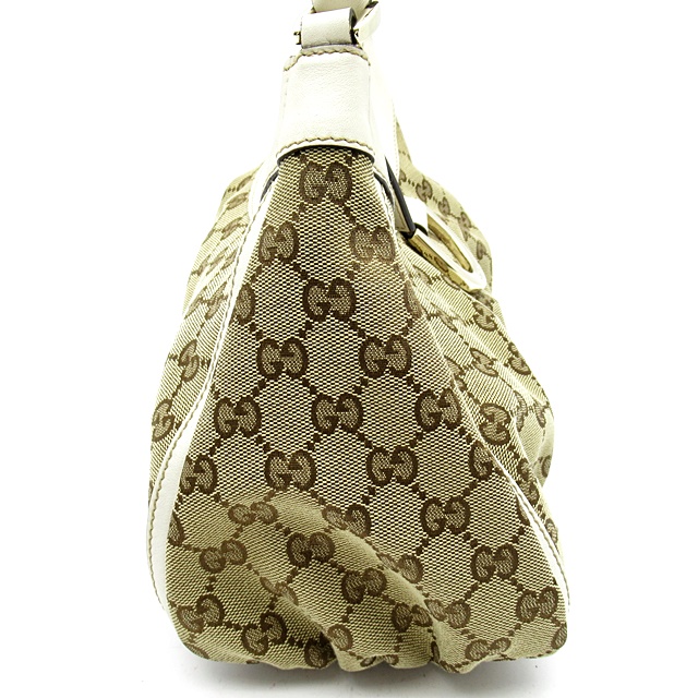 USED品。定番のGG柄が全面に施され、上品で高級感あふれるデザインとなっております。スッキリとしたフォルムにスリムなレザーライン使いがおしゃれなトートバッグです。