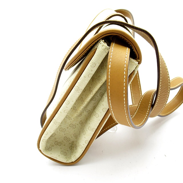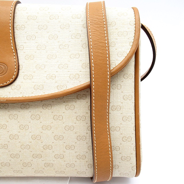 USED品。人気の高いオールドグッチとなります。コーティング加工キャンバス生地を使用したショルダーバッグです。全体にマイクロGGモノグラムをデザインしています。