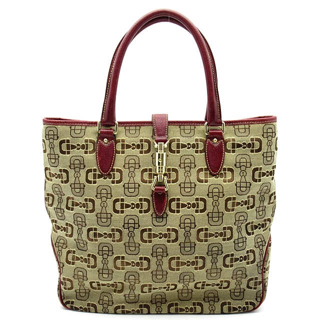 USED品。グッチの象徴であるジャッキー金具がデザインされたバッグ。ホースビット柄の落ち着いたカラーで幅広いシーンでお使い頂けます。