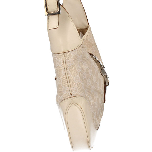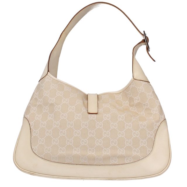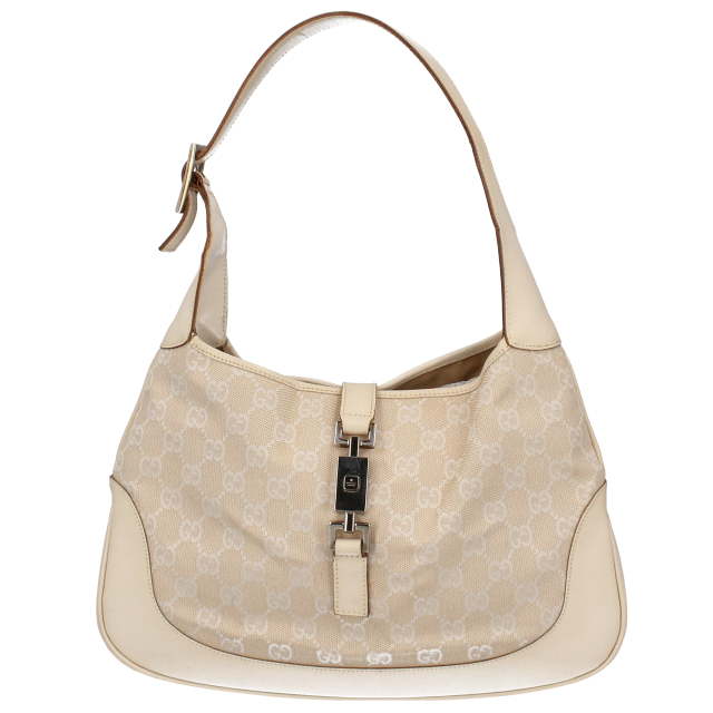 USED品。グッチの象徴ともいえるジャッキー金具がポイントのバッグです。幅広い年齢層でお使いいただけます。肩掛け可能で、普段使いにもお出かけにも丁度よいサイズです。