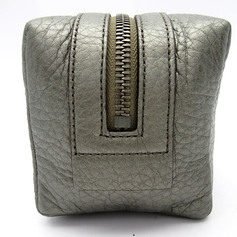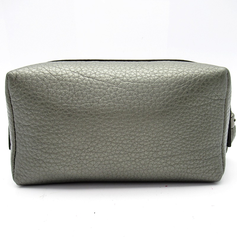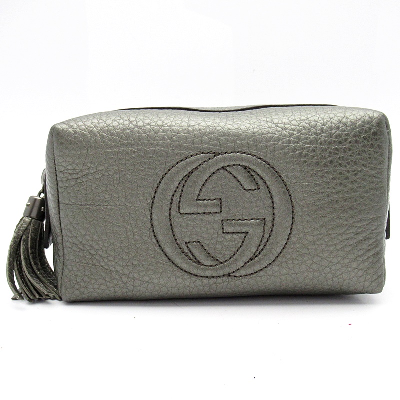 USED品。シックなグレーカラーにGG柄が上品に施されたオシャレなポーチです。ファスナーが大きく開くので出し入れしやすくマチも広いので見た目以上の収納力があります。