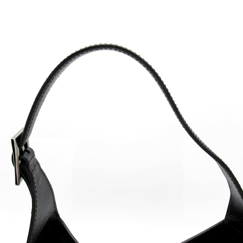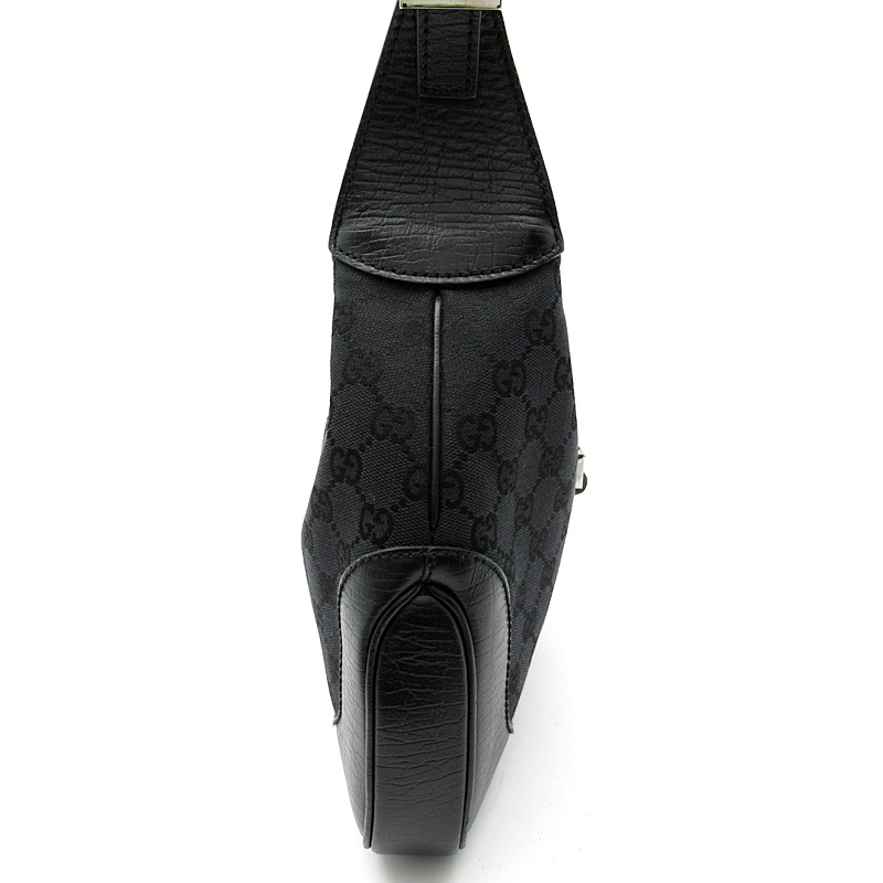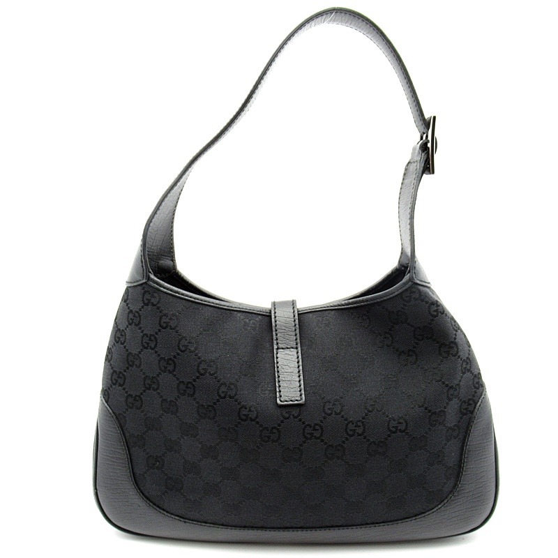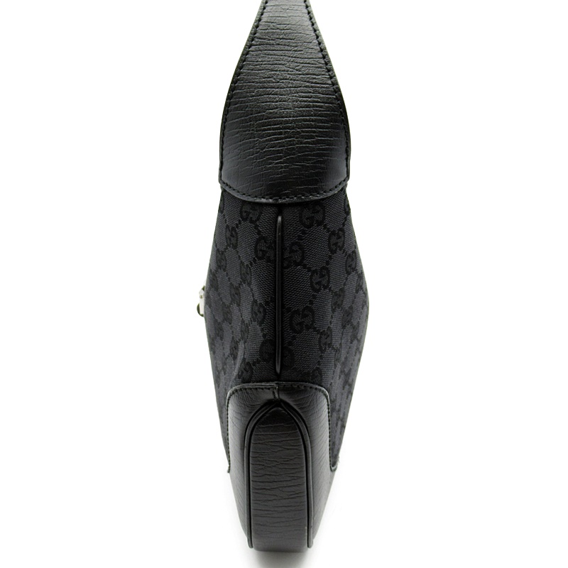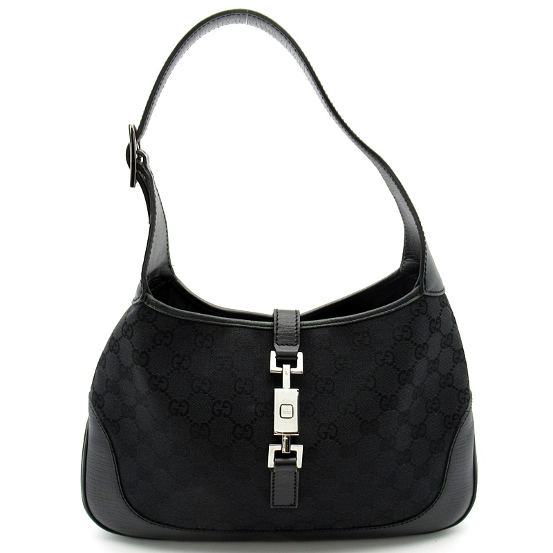 USED品。グッチの象徴であるジャッキー金具がデザインされたバッグ。上品なブラックカラーががコーディネートを引き締めます。幅広いシーンでお使い頂けます。