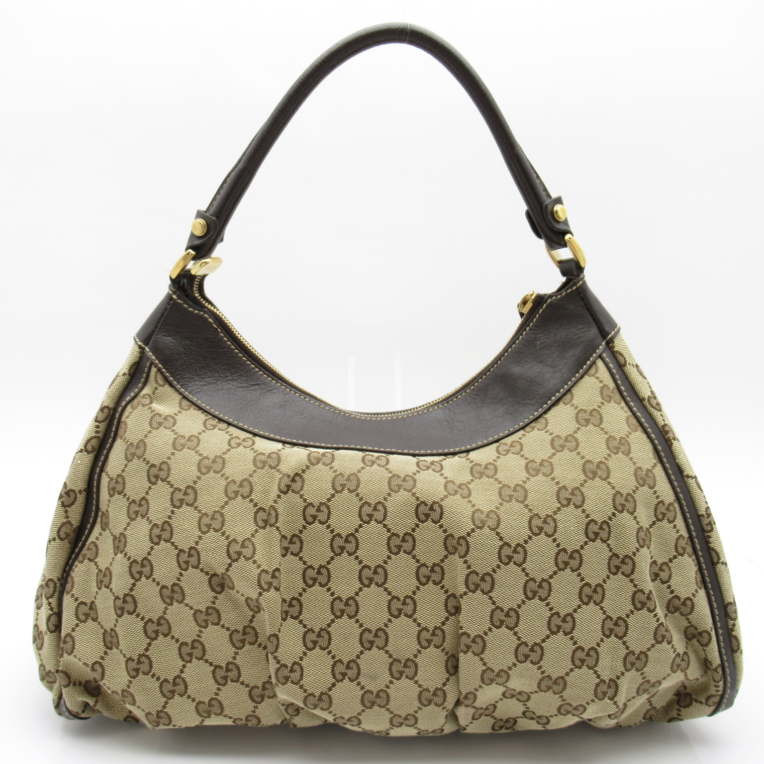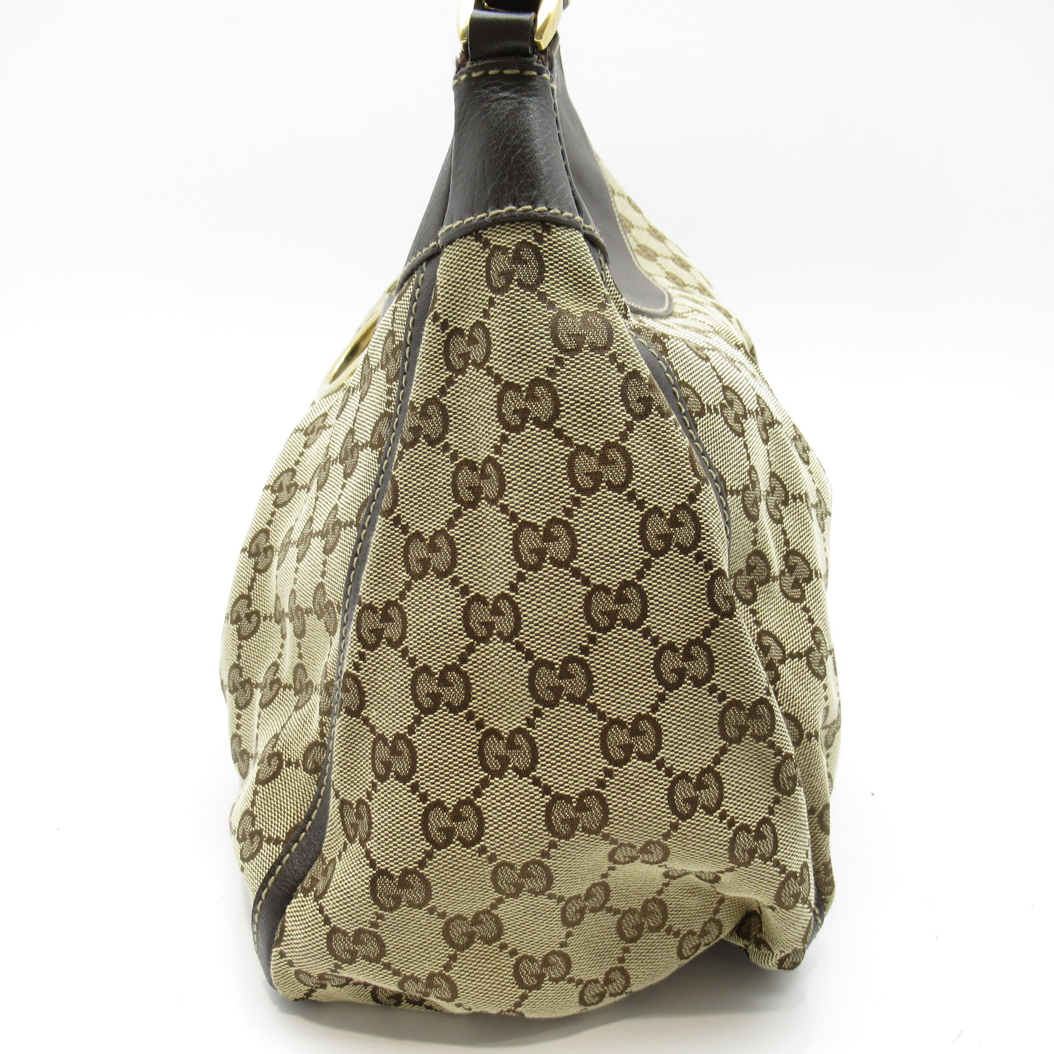 USED品。カジュアルなGGキャンバスと上質なレザーのトリミングで、大人のコーディネートがお楽しみ頂けます。クオリティの高さが際立つ、デイリーで愛着を持ってお使いになれる逸品です。