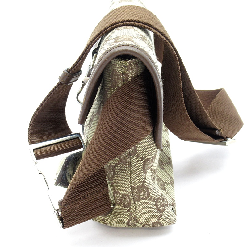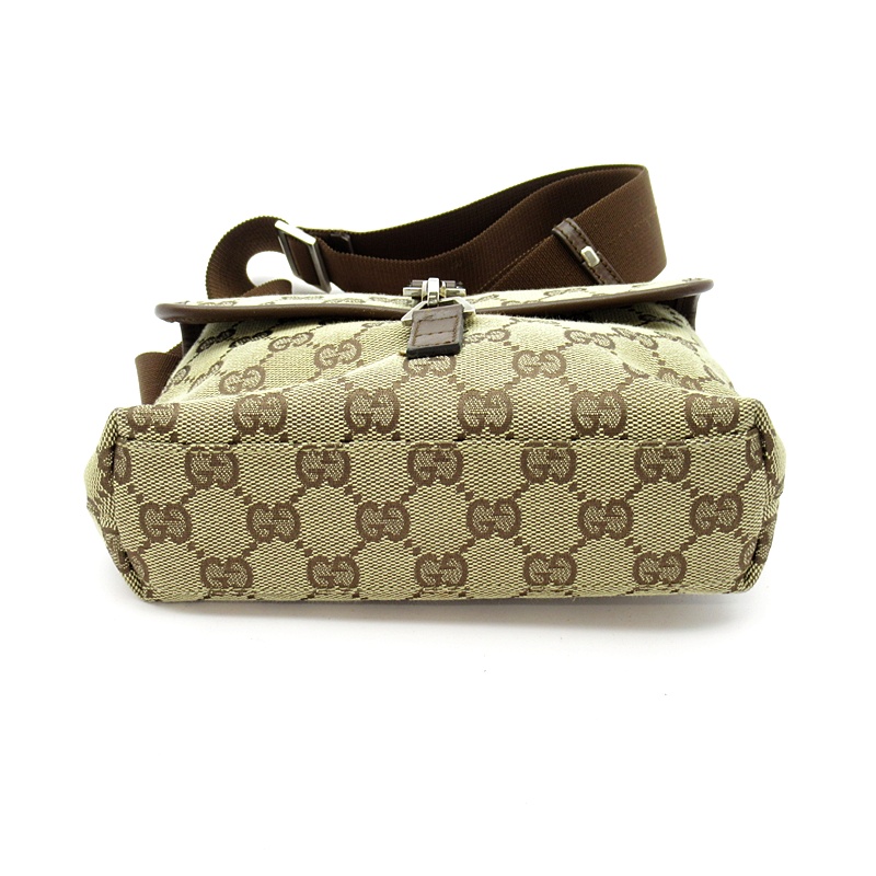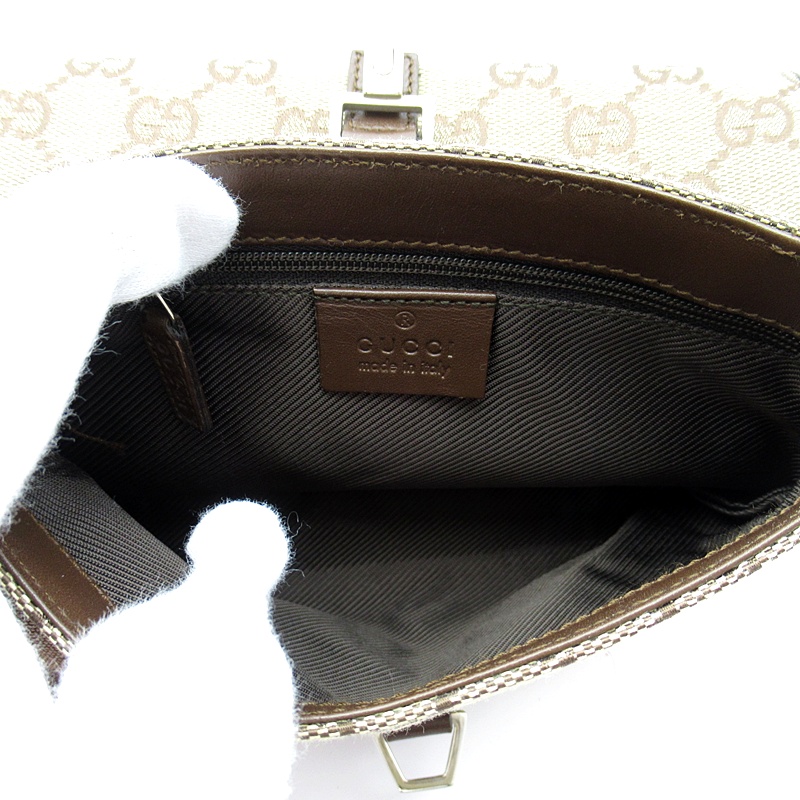 少々使用感有。フラップのレザー部分に擦り傷、裏側に押し跡、シワがあります。金具に傷、くすみがあります。