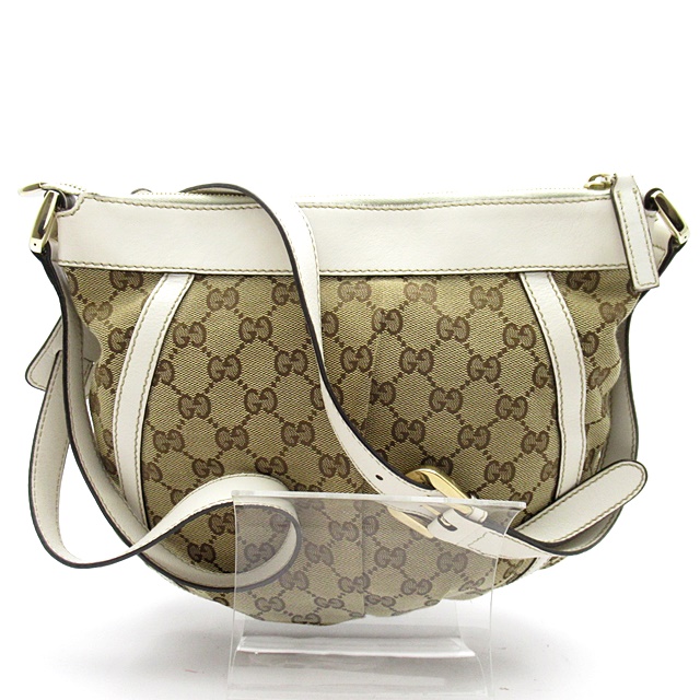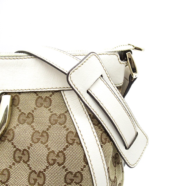 USED品。定番デザインのショルダーバッグとなります。ホワイトのレザーが爽やかな印象を与え、春夏にぴったりなデザインです。