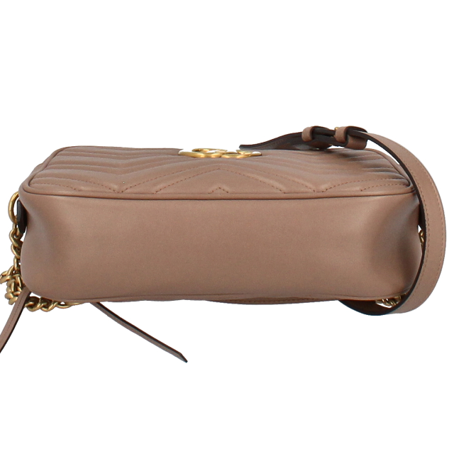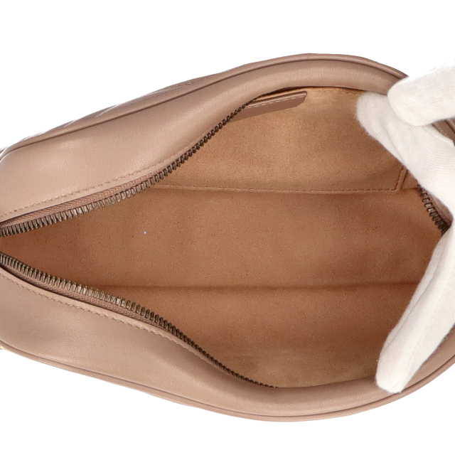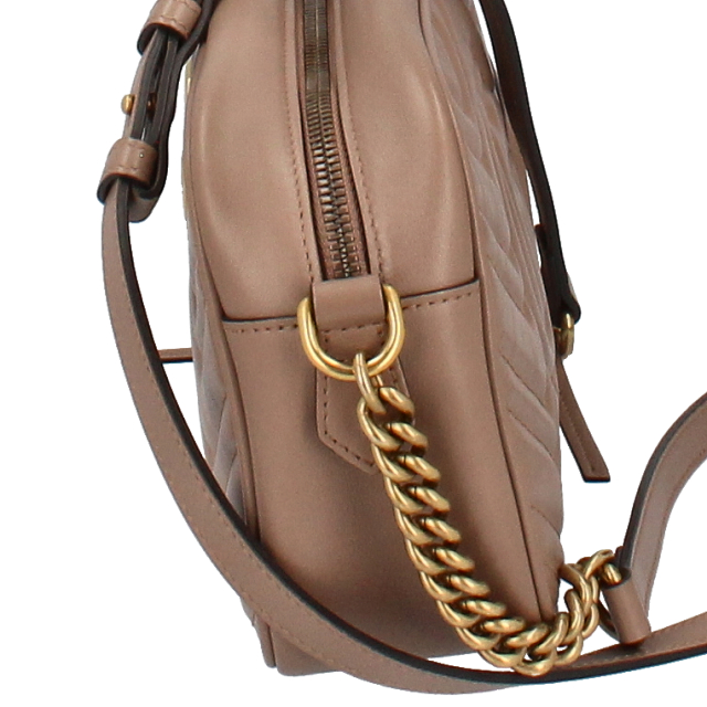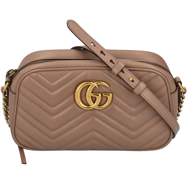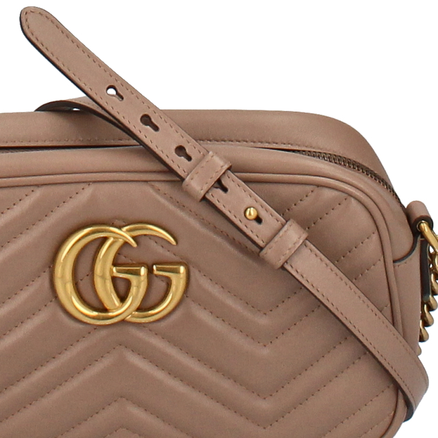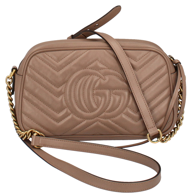 USED品。アンティーク加工されたダブルG金具とチェーンの調整により2WAYでお持ち頂ける仕様となっております。表面のキルティング加工が可愛いバッグです。