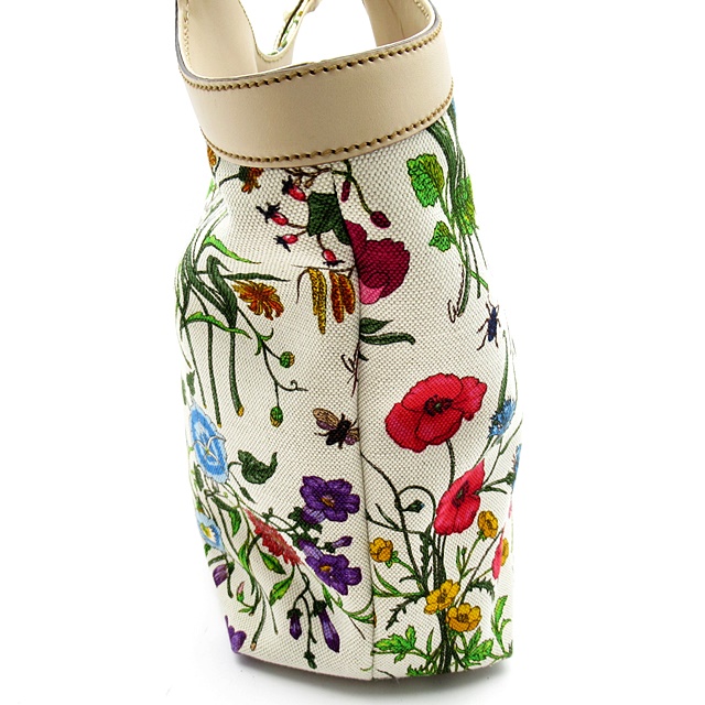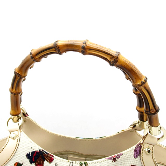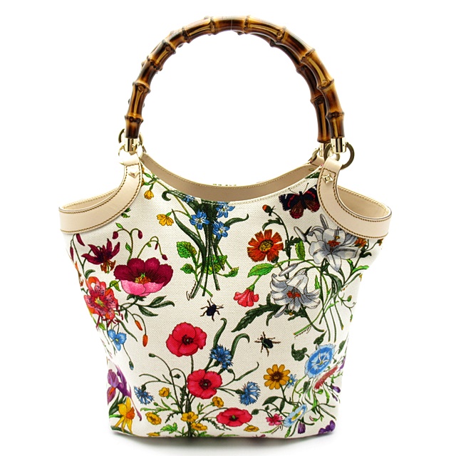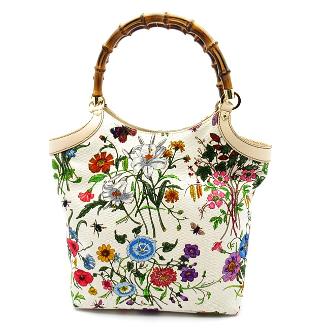 USED品。持ち手のバンブーがグッチらしい一品。クラシカルなフラワー柄がコーデに華やかさをプラスするアイテムです。