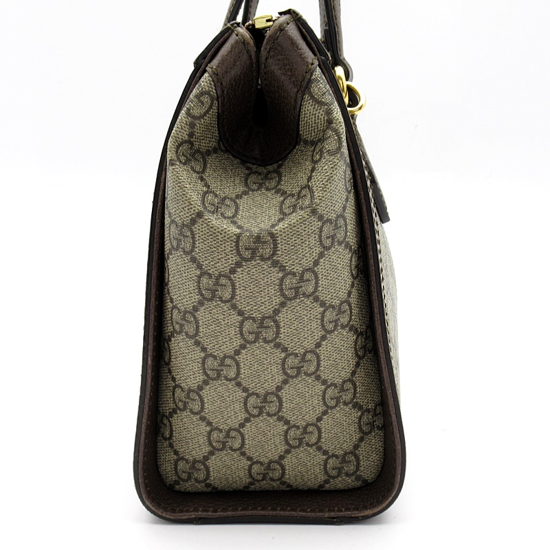 USED品。GGスプリーム素材の小ぶりなハンドバッグです。取り外し可能なストラップが付属しているので、さまざまなスタイルでご利用頂けます。