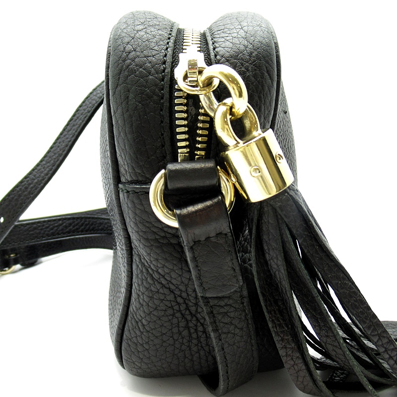 USED品。〔ソーホー〕ショルダーバッグは、レザータッセルとインターロッキングGエンボスがアクセント。軽量の天然グレインレザーを使用しています。