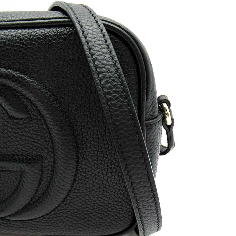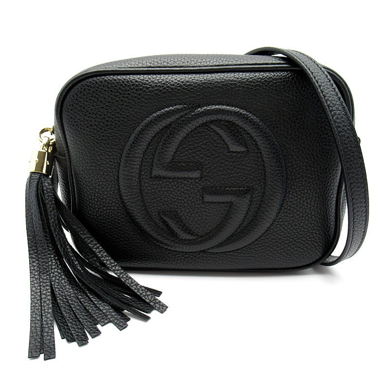 USED品。〔ソーホー〕ショルダーバッグは、レザータッセルとインターロッキングGエンボスがアクセント。軽量の天然グレインレザーを使用しています。