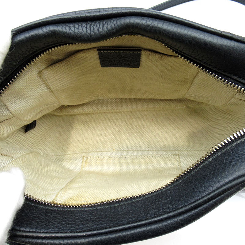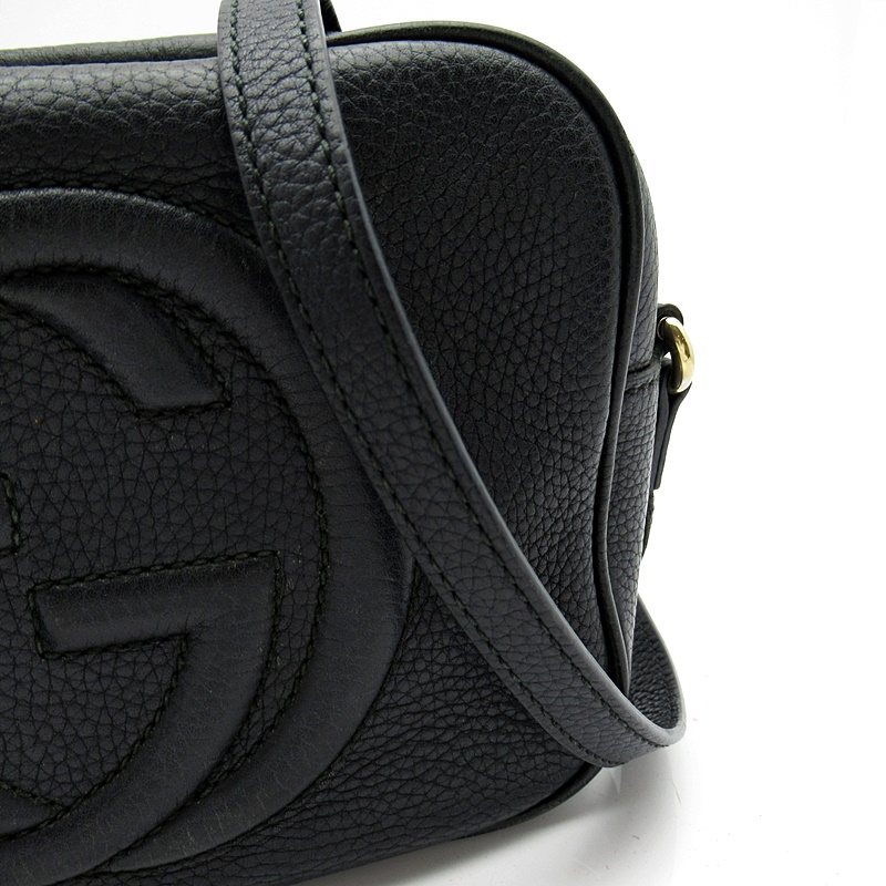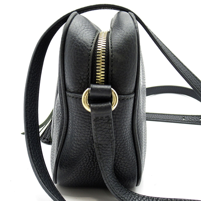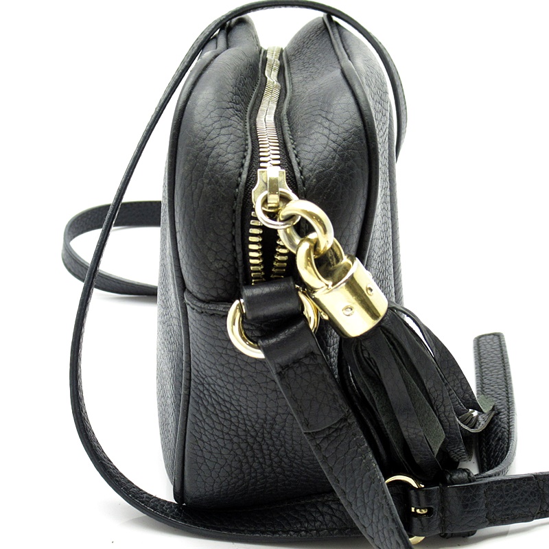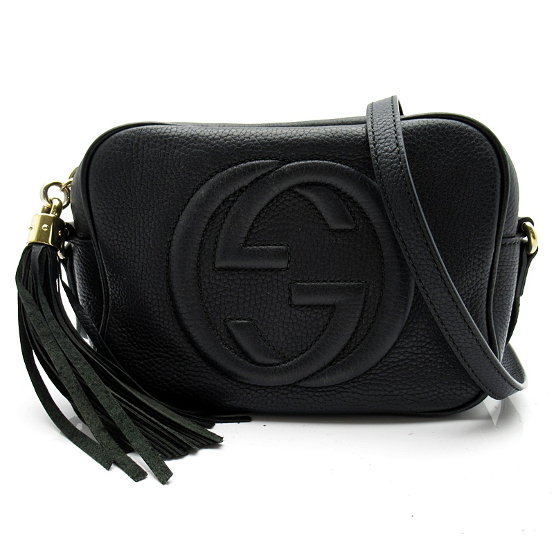 USED品。〔ソーホー〕ショルダーバッグは、レザータッセルとインターロッキングGエンボスがアクセント。軽量の天然グレインレザーを使用しています。