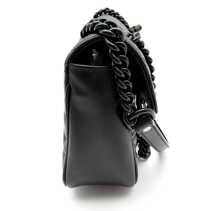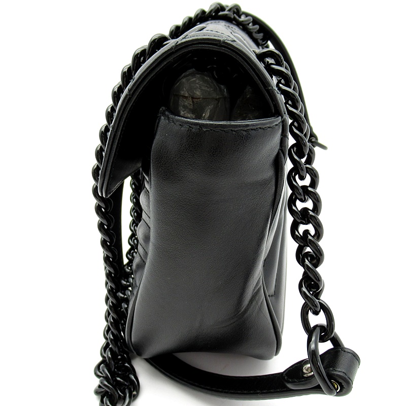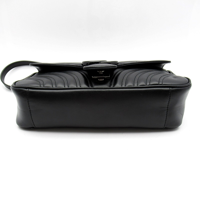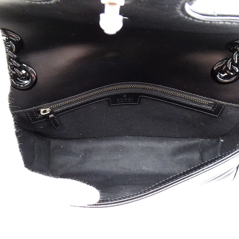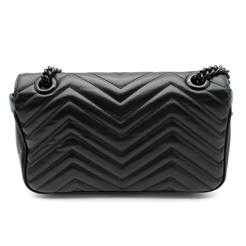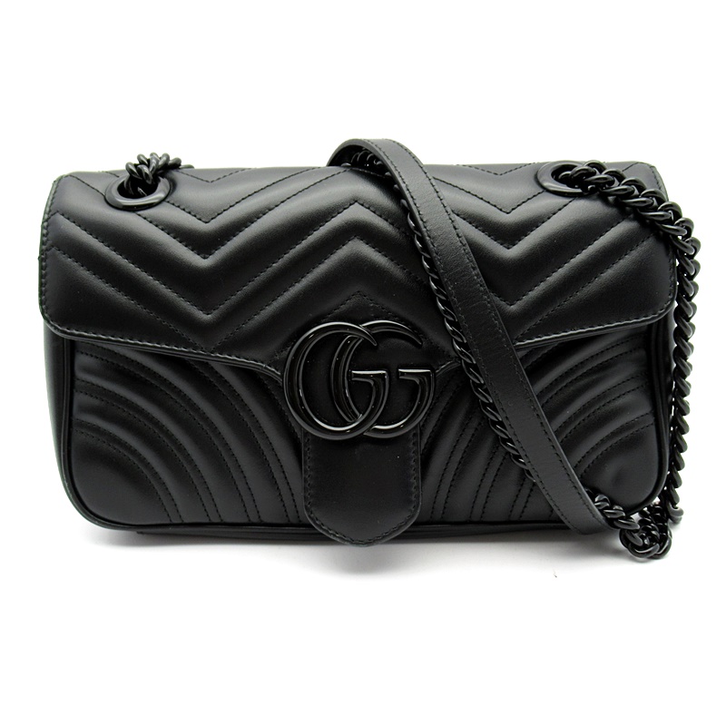 USED品。ソフトなストラクチャードシェイプが特徴的なスモールサイズの〔GGマーモント〕 チェーンショルダーバッグ。オーバーサイズのフラップ クロージャーにダブルG ハードウェアがあしらわれています。