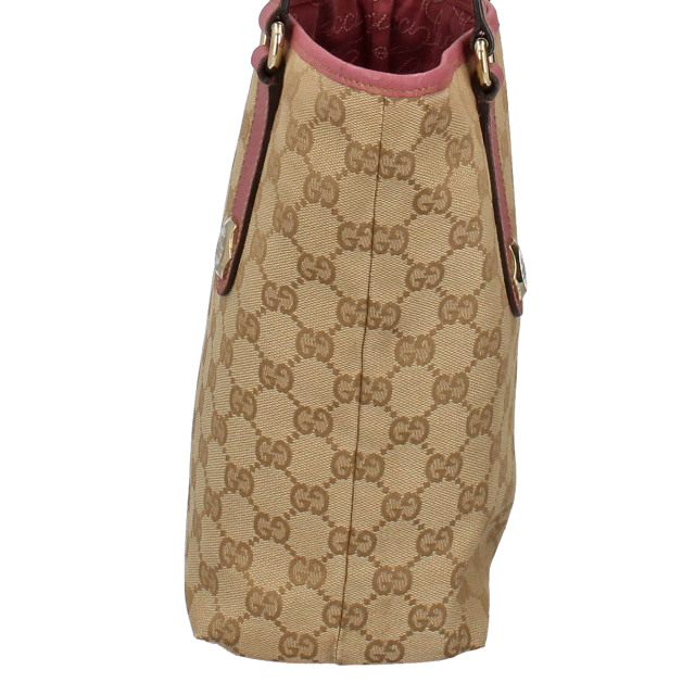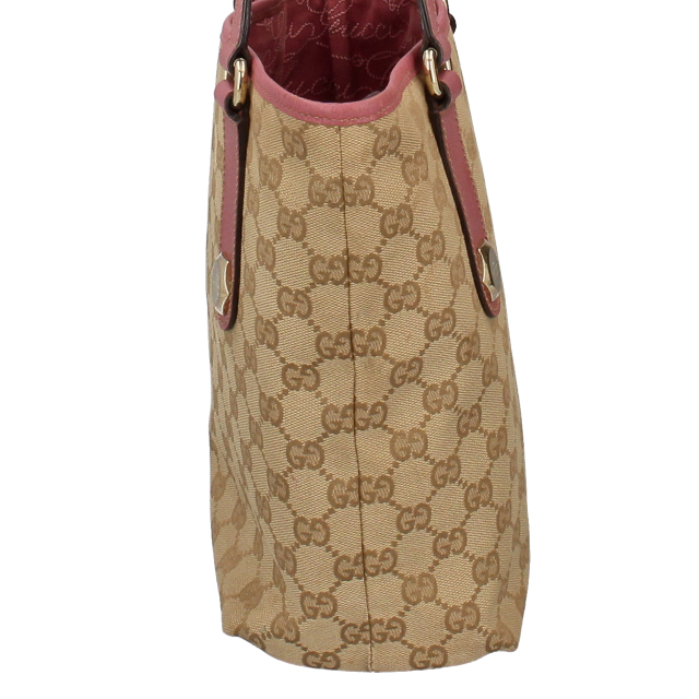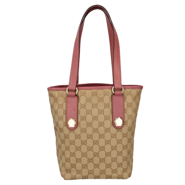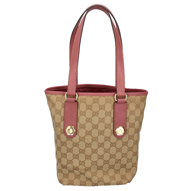 USED品。GGキャンバスのカジュアルな印象のバケツ型トートバッグ。持ちやすいサイズ感でデイリーユースにおすすめです。