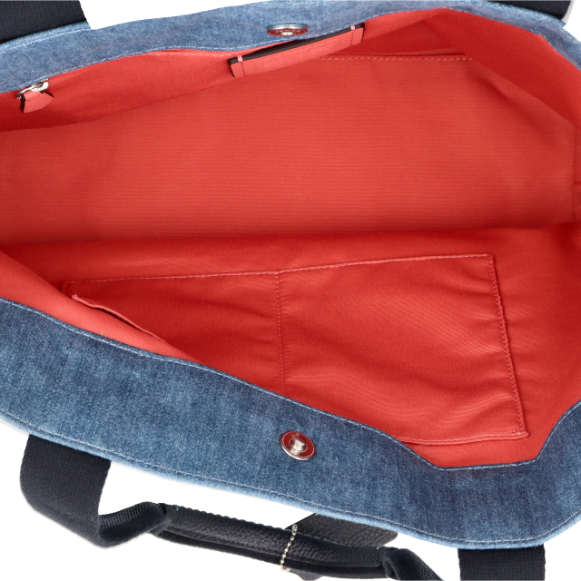 USED品。ブルーデニムが可愛いトートバッグ。大容量で使い勝手抜群です。ファッションやシーンを選ばずお使いいただけます。