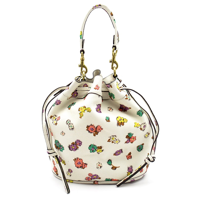 USED品。キャンバスとシボ加工を入れたレザーで仕立てられた、長財布がすっぽり入る巾着バッグ。ドローストリング開閉、内側にはファスナーポケットが1つついております。