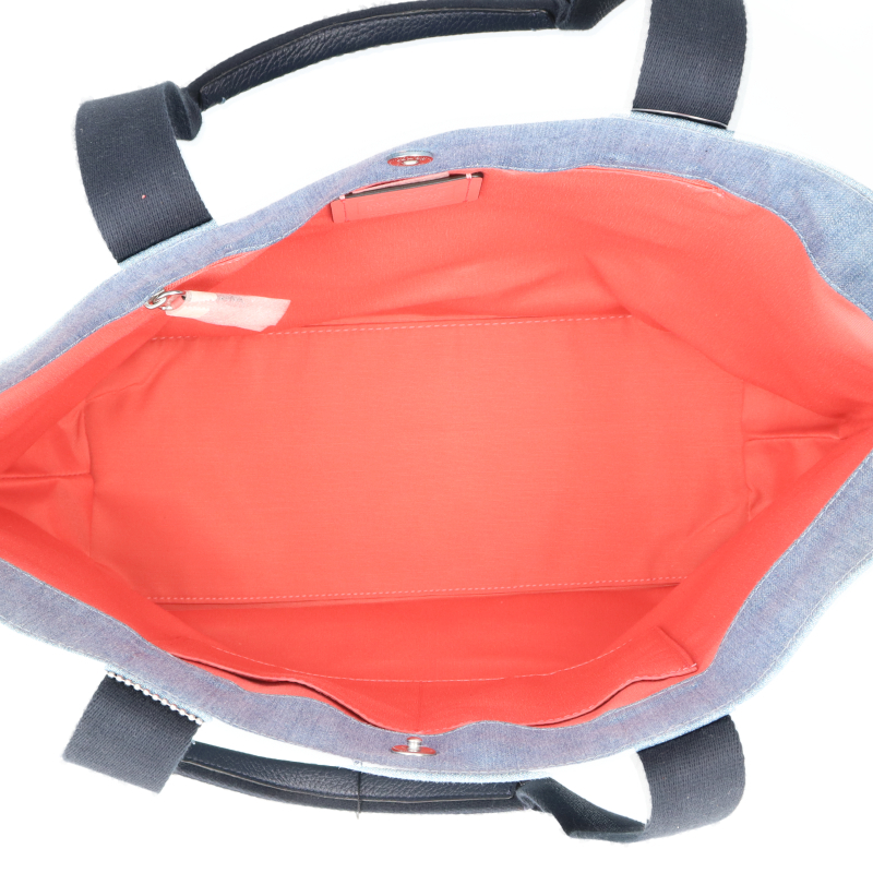 未使用品。ブルーデニムが可愛いトートバッグ。大容量で使い勝手抜群です。ファッションやシーンを選ばずお使いいただけます。