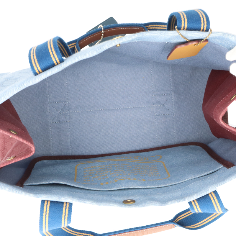 USED品。ホックボタン開閉でマチが広く、B4サイズも入り大容量。小物整理に便利なポケット付きです。ハンドルはゆったり肩掛けできる長さがあり、通勤通学から普段使いとマルチに活躍出来ます。