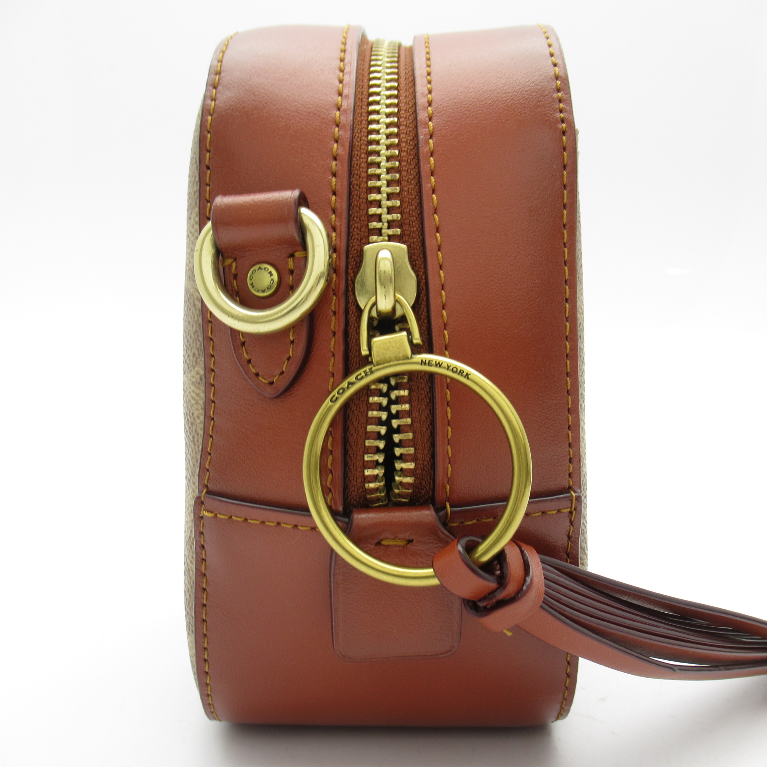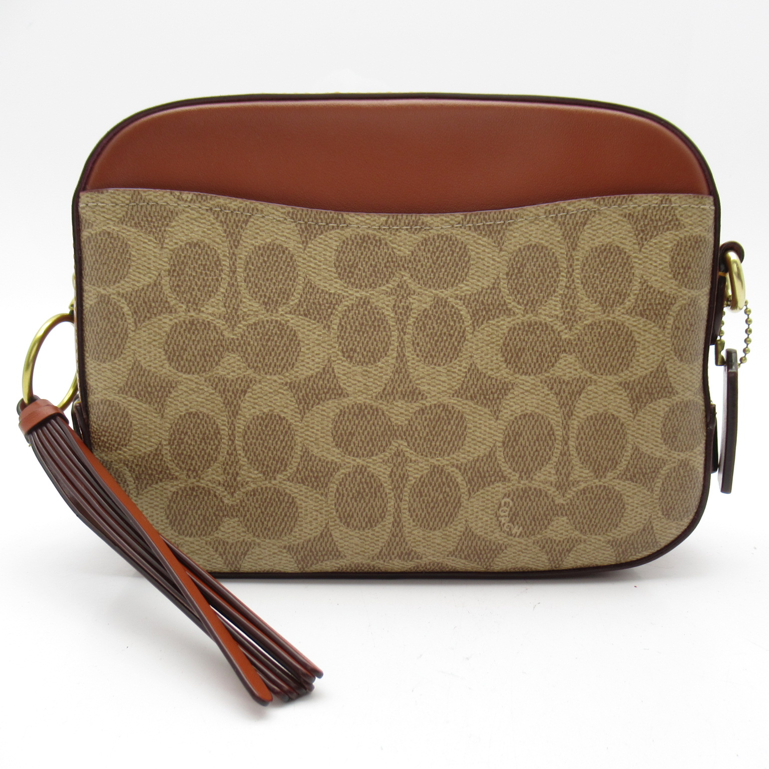 USED品。コーチの定番シグネチャー柄とレザーで仕げられたお洒落なショルダーーバッグ。バッグについているタッセルが、アクセントとなっております。