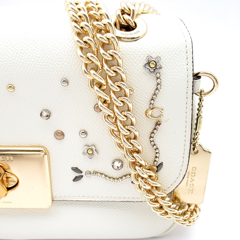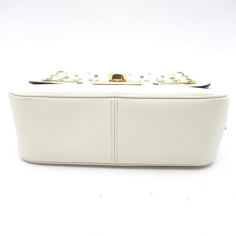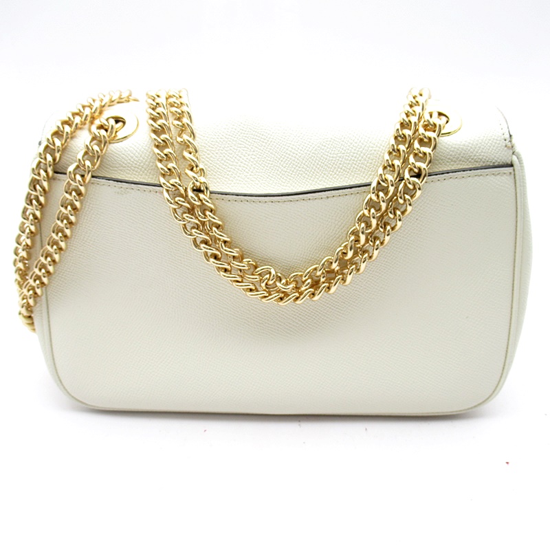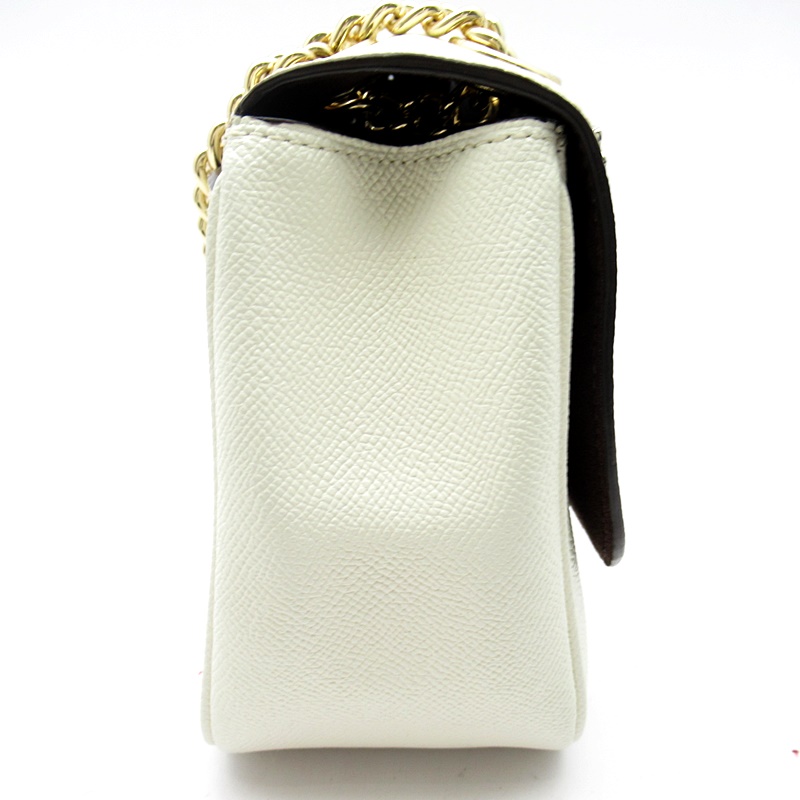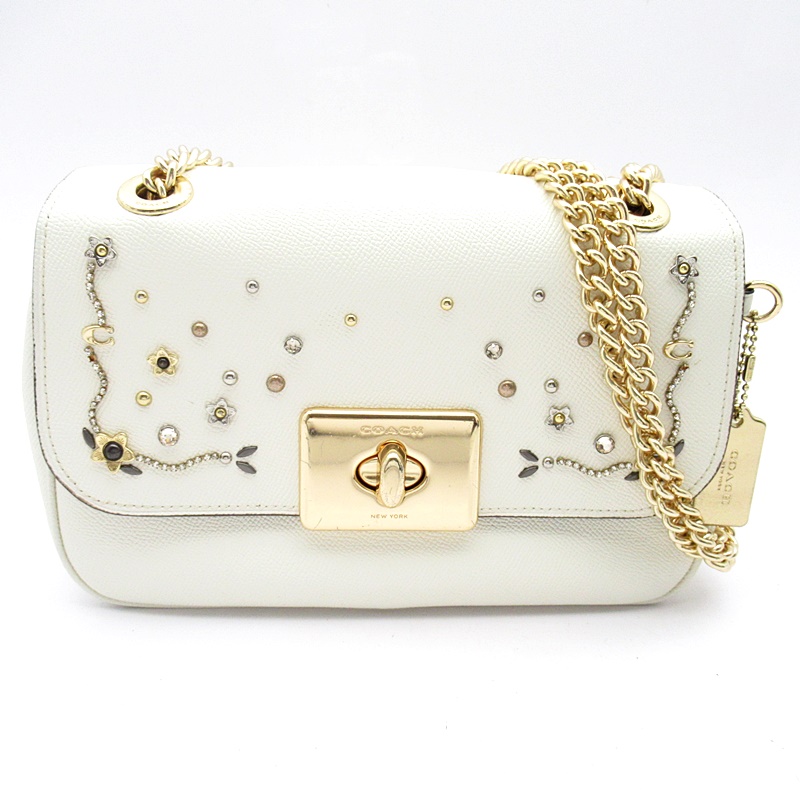 USED品。存在感のあるゴールド金具がポイントになっていて、上質なレザーが高級感を感じます。小さいお財布などを入れて運ぶのに便利です。