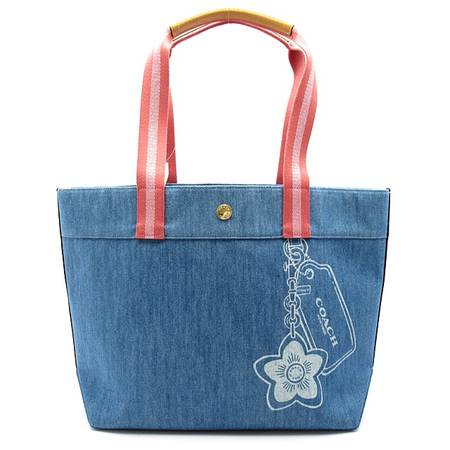 未使用品。チャームのプリントが可愛い大人気のデニム地トートバッグ。通勤、通学にもおすすめです。