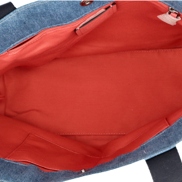 USED品。ブルーデニムが可愛いトートバッグ。大容量で使い勝手抜群です。ファッションやシーンを選ばずお使いいただけます。